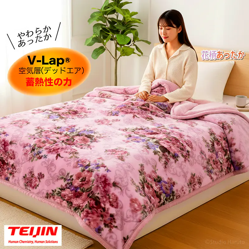 テイジン あたたかい掛け毛布 シングル 140×200cm V-Lap 花柄 ピンク 蓄熱 極厚裏起毛 マシュマロタッチ ふんわり TEIJIN