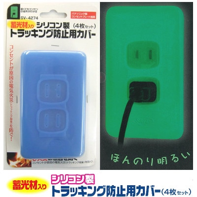 シリコン製 トラッキング防止用 蓄光コンセントカバー4枚セット