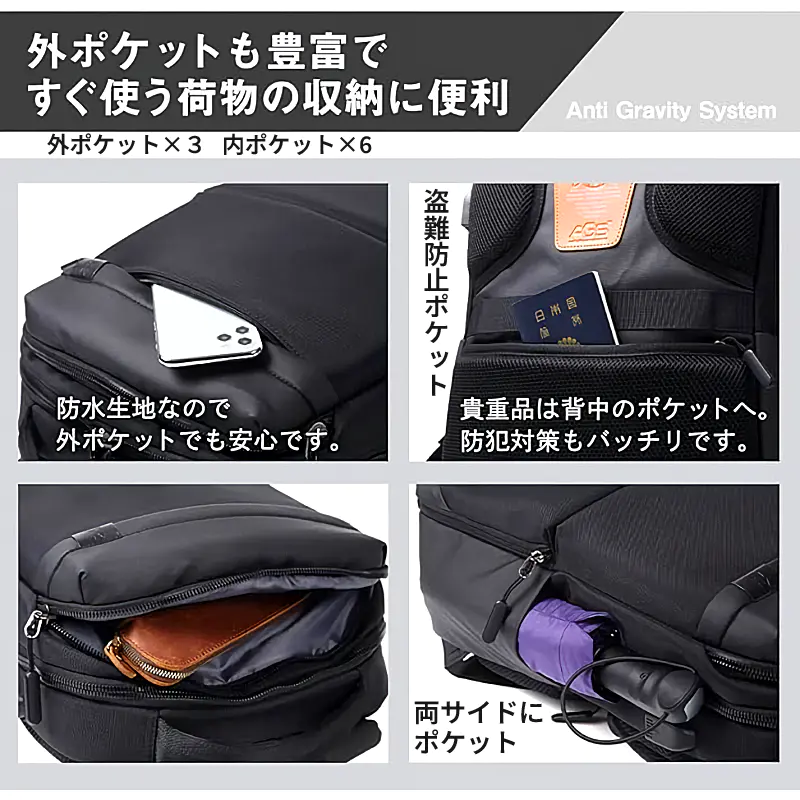 発送目安 : 1~3日で発送予定(土日祝除く)![]() ![]() ![]() ![]() ![]() ![]() 驚くほど軽く感じる 進化したビジネスリュック このATLA無重力リュックが特別なのは、その名の通り、まるで体感重量が消え失せたかのようなAGS(Anti Gravity System)機能にあります。これは単なる軽量化とは異なり、車のサスペンション構造から着想を得たというバネの原理を利用し、荷重が肩にかかる衝撃を劇的に軽減する機能です。重いPCや資料を詰め込んでも体への負担が和らぐメリットは、まさに移動が多い現代人の強い味方と言えるでしょう。しかもこのシステム、48時間・15万回もの耐久テストをクリアしており、その構造的な信頼性は折り紙つきです。 さらに、単に軽いだけでなく、撥水性の高いタフなナイロン素材や、使用頻度の高い物をスマートに収納できる計算されたポケット配置など、細部にわたる配慮が行き届いています。これにより、雨の日も安心で、必要なものがサッと取り出せる快適さが実現しており、まさに現代のビジネスシーンに求められる機能性と快適性、そしてデザイン性を高次元でバランスさせた逸品と言えるでしょう。 豊富な収納ポケットで快適整理 このリュックは、収納ポケットがたくさん搭載されています。普段よく使う物は外側のポケットに、その他の小物は内側のポケットに収めることができ、使いやすさが向上します。日常の荷物整理もスムーズに行える点が魅力です。 収納力においても抜かりはありません。約23Lという十分な容量に加え、メインコンパートメントは15.6インチまでのノートPCやA4ファイルをすっきり収められるサイズ設計。さらに、タブレット専用ポケットや小物用の内ポケットが6つ、外側にも3つのポケットがあり、荷物の定位置を決めやすく、これほど荷物の整理整頓が容易なリュックもそうありません。 使用頻度の高いものは外ポケットに、旅行の際は大切なパスポートやお財布など貴重品は背面の盗難防止ポケットにと使い分ければ、必要なものへ瞬時にアクセスできる快適さを実感いただけるはずです。 外側に便利な左右ポケット 両サイドに設けられた収納ポケットは、折りたたみ傘やペットボトルなど、歩きながらでもサッと取り出したいコンパクトな物を収納するのに大変便利です。 ビジネスやプライベートでも使用可能 機能性だけでなく、デザインの汎用性もこのリュックの大きな魅力です。シンプルで洗練されたブラックのデザインは、スーツスタイルからカジュアルな装いまで、シーンを選ばず自然に馴染みます。男女兼用デザインなので、男性はもちろん、機能的なリュックをお探しの女性にも自信を持っておすすめできます。AGS機能による快適性、抜群の収納力、そして急な雨にも対応できる撥水加工(生地・ファスナー共に)など、使い心地は抜群です。便利な機能が充実したという言葉がまさにぴったりの、あらゆるニーズに応える実力派リュックです。 |
