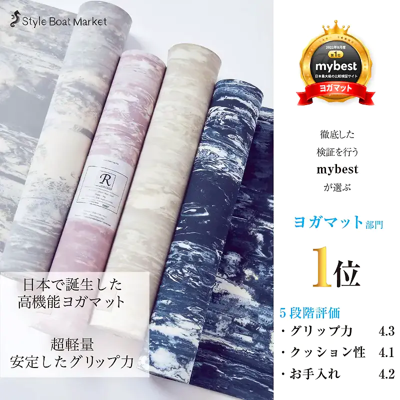 ヨガマット 5mm リカバリーヨガマット ムーンライトブルー 低反発×高反発 高グリップ力 滑らない 水洗い可 style boat market 日本製