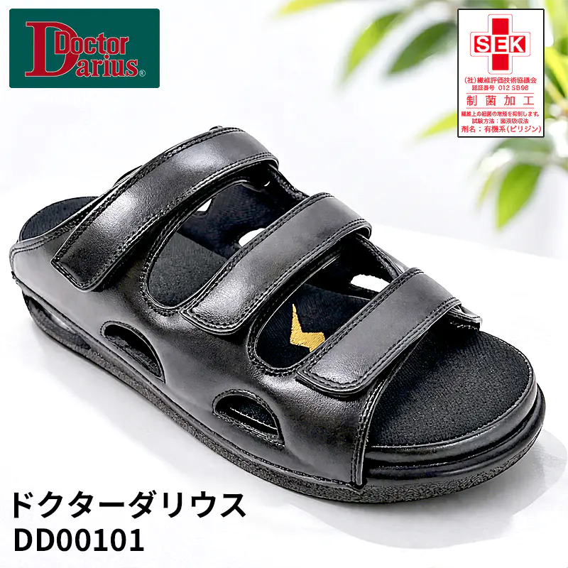 ドクターダリウス ベルトフリー ブラック DD00101【病棟・内勤向け/脱ぎ履き簡単】 SS~LL 疲れにくい むくみ対応 高機能サンダル 医療現場 オフィス ナースサンダル
