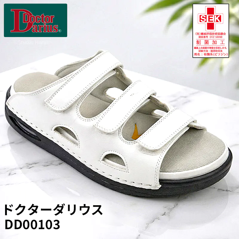 ドクターダリウス ベルトフリー ホワイト DD00103【病棟・内勤向け/脱ぎ履き簡単】 SS~LL 疲れにくい むくみ対応 高機能サンダル 医療現場 オフィス ナースサンダル