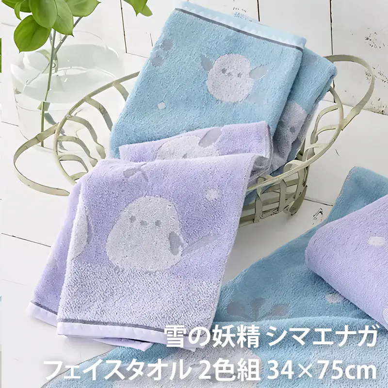 雪の妖精 シマエナガ フェイスタオル 2色組 34×75cm 日本製 今治タオル 綿100% かわいい ブルー パープル