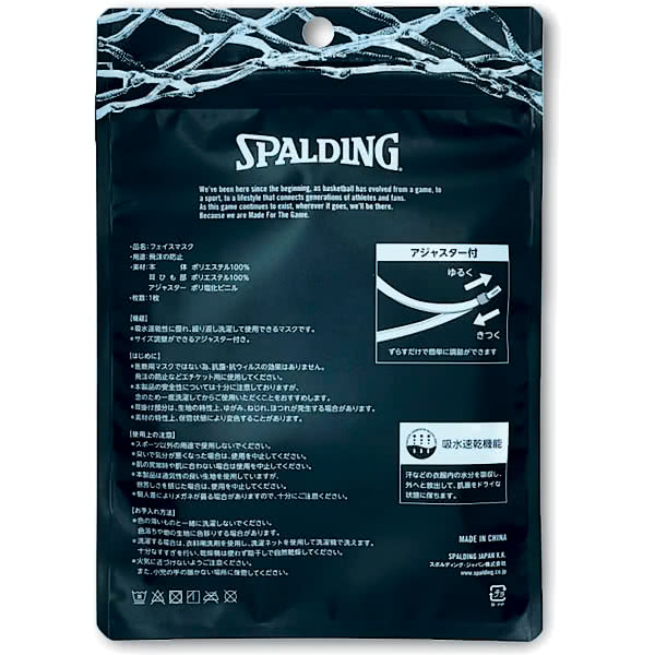 バスケットボール フェイスマスク ブラック 16-001BK 繰り返し使用可能スポーツマスク 吸水速乾機能 スポルディング SPALDING