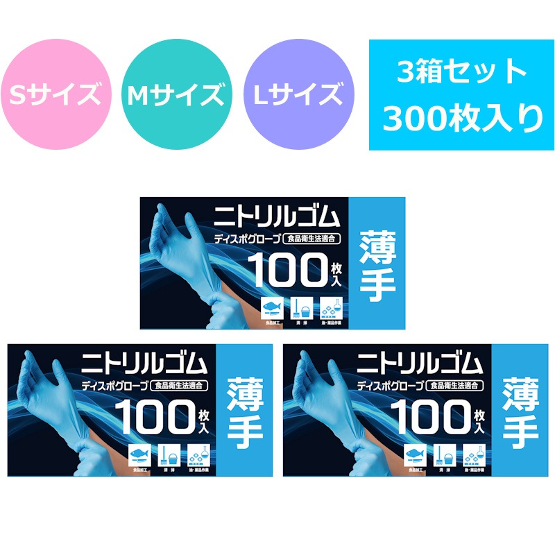 食品衛生法適合 ニトリルゴム手袋 ディスポグローブ 薄手 100枚入り Mサイズ AC-011 パウダーフリー ラテックスフリー 左右兼用 業務用 衛生 介護 作業用 使い捨て 使い切り ニトリル手袋