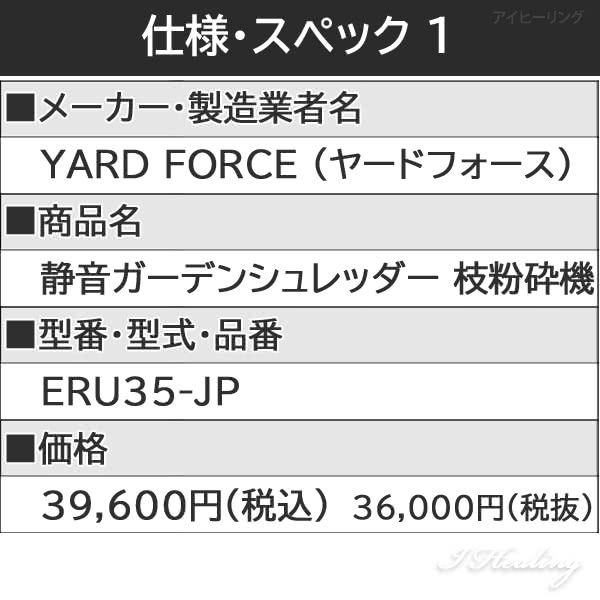 | ●商品名:アイヒーリング本店 新品 YARDFORCE 静音枝シュレッダー 電動 枝粉砕機 枝シュレッダー ヤード フォース ウッドチッパー 小型 ガーデン シュレッダー ブランチ シュレッダー 木材破砕機 ●ブランド:YARD FORCE・ヤードフォース ●型番:ERU35-JP ●材質 本体:スチール・ABS樹脂・アルミ他、刃:炭素鋼 ●サイズ 約:幅47cm*奥行き65cm*高さ93cm (組み立て時)、お届け時の箱サイズ:57cm*40cm*53cm ●重量:重さ約27kg ●用途:庭木の剪定 庭の手入れ 木材チップ 園芸 ガーデニング 堆肥 マルチング材 家庭用 個人 自宅 町内会 自治会 福祉会 ごみ減量化対策、一般名称:ガーデンシュレッダー 剪定枝葉粉砕機 ウッドチッパー 小枝粉砕機 枝木粉砕機 ●電源コード長さ:3m ●粉砕最大:径3cm *木の種類、状態によって異なります ●性能 スペック:家庭用 電源:AC100V(50/60Hz)、消費電力:1450W、定格時間:30分、回転数:50rpm、製造:中国製(ドイツ企画)、一部組立式 目安時間2人で約10分から15分、ご購入より1年間品質保証付き(本体) ●セット内容:本体・保護眼鏡・手袋・押込棒 ◎内容:ご近所に気兼ねしない静音ガーデンシュレッダー。庭木の剪定枝葉を、動力は電動を利用することにより粉砕する器具です。 粉砕した枝葉は堆肥や植栽地の雑草防止、養成材として利用する等、ごみの減量にも寄与します。 うるさくない静かなギア式。運転音4割減で剪定後の枝をいつでもスッキリ。 2016年に発売されてから人気の枝シュレッダーに、お客様から沢山ご要望いただいた静音モデルが遂に登場。 新採用のギア粉砕方式によって動作音40%削減の64dB(デシベル)を実現。 お家が隣接する住宅地のご家庭でも、ご近所に気兼ねなく枝を粉砕できます。 静かなのにパワーは十分。径3.0cmまでの太枝も対応。 約60Lの大容量ダストボックス付き。 使いやすいボタンや移動が楽な大型タイヤ、ボックスを固定しないと作動しない安全装置も安心です。 |