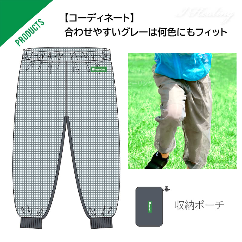 | ●商品名:アイヒーリング本店 モスキーヒ シリーズ 虫よけネットパンツグレー おとな用 虫よけパンツ ズボン たんぴん 蚊除けの衣類 虫用品 虫刺され対策グッズ インセクト 蚊よけ 虫除け洋服 男性 女性 兼用 防虫ウエア ファッション 履くかや メッシュパンツ iHealing PRODUCTS MOTHKEEHI INSECT NET PANTS BUSINESS PROPOSAL ●服サイズ目安 男女兼用 大人サイズ M:適応身長145cm-165cm、ウエスト68-84cm、パンツ丈100cm 大人サイズ L:適応身長160cm-175cm、ウエスト76-94cm、パンツ丈108cm ●型番:VA-055、カラー:チャコール グレー CHARCOAL GRAY 灰色、柄:無地 ●材質 組成 本体:ポリエステル100%、リブ生地:綿96% ポリウレタン4% ●用途 おすすめ:虫 蚊から肌を守る 庭 公園 遊び 散歩 ジョギング ガーデニング 家庭菜園 園芸 外DIY アウトドア 大自然のレジャー キャンプ 軽いスポーツ 森 林 山 川 屋外 野外 フェス ハイキング トレッキング 軽登山 BBQ バーベキュー キャンプ 花火 子供の登下校の見送り ブヨ アブ ダニ 防虫ネットで蚊の対策 プレゼント・贈り物 ●販売店:アイヒーリング正規販売店 ●ブランド 機能:mothKeehi モスキーヒ加工 防蚊JIS適合品 ●セット内容:防虫ネットパンツ1 ●製造メーカー:株式会社ディックコーポレーション 新潟 DIC CORPORATION *衛生上いかなる理由でも返品・サイズ交換は対応いたしかねますのでご了承ください。 ◎内容:肌に優しい虫よけ。履くことで虫を防ぐ、定番のネットパンツにスポーティなグレー色が登場。コーディネート 合わせやすいグレーは何色にもフィット。走ったりしゃがんだり、外遊びを思いっきり楽しもう。虫や蚊が多い場所の蚊対策におすすめ。防虫忌避・安心安全・機能的 かんたん虫よけアイテム。殺虫成分を使用しない、自然で体にやさしい機能ブランド。虫が出る季節に、安心して着用いただけます。 アウトドア、ちょっとしたお出かけや外遊び、普段の庭仕事や散歩にも幅広く使える、大人用の虫よけパンツです。 通気性の良いネット生地に虫よけ加工を施しています。総メッシュなので蒸し暑い日でも風通りが良く、快適に虫よけ対策が出来ます。 虫よけネットパンツ製品特徴 虫刺されも怖くない 履くだけ やさしく防虫。虫が苦手なママも安心。 ピクニックやキャンプに、自然の中で笑顔いっぱい。外でも快適。パパとママとお揃いも。 楽な履き心地のウエストゴム仕様。 足首部分はリブ付きで蚊の侵入をガード。 持ち運びに便利な収納袋が付属。 ネット生地で通気性が良い。 ややゆったりとしたシルエット。 殺虫剤不使用で肌にやさしい。MOTHKEEHIの特殊加工で虫が寄りにくい。着る人の健康と安全を考慮。 有害物質を規制し皮膚への安全性を考慮しています。 |
