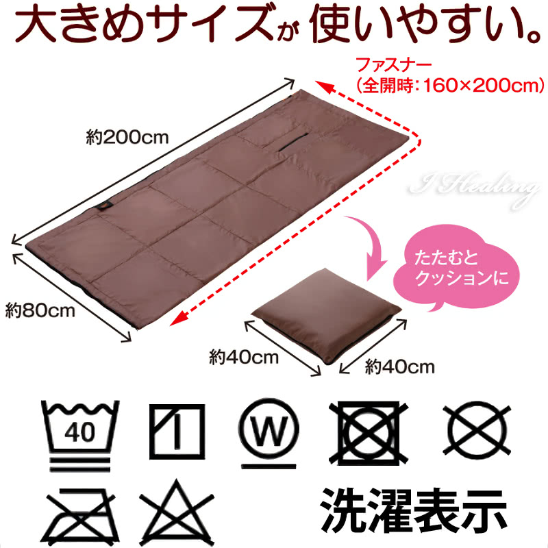 | ●商品名:アイヒーリング本店 公式 モアホット morehot 暖暖あったか4WAYシュラフ ダンダン ねぶくろ iHealing Schlafsack メンズ レディース 大人 男女兼用 シングル 洗える 洗濯可能 1人 アルミ 多機能 封筒型シュラフ 冬用 あったかグッズ ●本体サイズ:全開時160cm×200cm、寝袋時:80cm×200cm、収納時:40cm×40cm ●シュラーフ材質:本体(表側・裏側)ポリエステル100%、中綿:ポリエステル100% アルミシート入り、カバー:ポリエステル100% ●重量:1295g ●カラー:ブラウン 茶色 BROWN ●お届け時 個箱サイズ:45cm×45cm×10cm、重さ1350g ●メーカー:株式会社メイダイ ●製造:中国製 企画・デザイン日本 ●用途 例:秋 冬 初春 防寒 冷え対策 リビングで寛ぐ時 ブランケット 車中泊 アウトドア キャンプ レジャー 防災 停電 災害時 避難 持ち運び 軽量 コンパクト収納 電気代 節約 電気毛布代わり 布団 上掛け ◎内容:暖暖あったか4WAYシュラフは、体温で蓄熱し保温するアルミシート入りの4WAY寝袋。4通りでいろいろ使える、あったかシュラフ。 肌触りの良い、ふんわりフリース。 暖房なしでもあったかい寝袋。掛け布団、寝袋、足元ウオーマー、着る毛布で普段使いに。災害時の避難場所、アウトドアや車内での仮眠や睡眠時にて使うのも便利なシュラフ。 電気を使わず蓄熱保温、厳しい冷えでも暖かく快適。賢く節電対策。色々な使い方が出来るのでとても便利です。 暖房不要のあったか寝袋を使えば、暖房いらず底冷え心配なし。ご家族へのプレゼントにも喜ばれます。ギフト ラッピング対応しています。 ■寝袋として、就寝時の掛け布団として、着る毛布やひざ掛けとしてポカポカ快適。 ■全面に中わたとアルミシートの入った寝袋。アルミシートに中わたを両面からニードル加工をすることで、従来のアルミシート以上の蓄熱保温性と蒸れにくさを実現。通気性も良くなっています。更にアルミシートによるシャカシャカ音も抑えます。 ■電気毛布や暖房に頼らず、節電して暖かく安全に過ごしたい方に。アルミシートで体熱を反射して中わたで保温するから厳しい寒さでもポカポカ。 ■腕出しファスナーから手が出せるので、暖まりながらスマホ操作や読書、パソコン作業・デスクワークもできる。 ■洗濯機で丸洗いOK。いつも清潔で快適。 ■コンパクトにたためて、使いやすいクッションになる。 ■フェーズフリー・防災用品、アウトドアや災害時の備えとしても。 ■収納カバーにたたんで入れればクッションに変身。身近に備えることで、災害時やキャンプにすぐ持ち出せる。 |