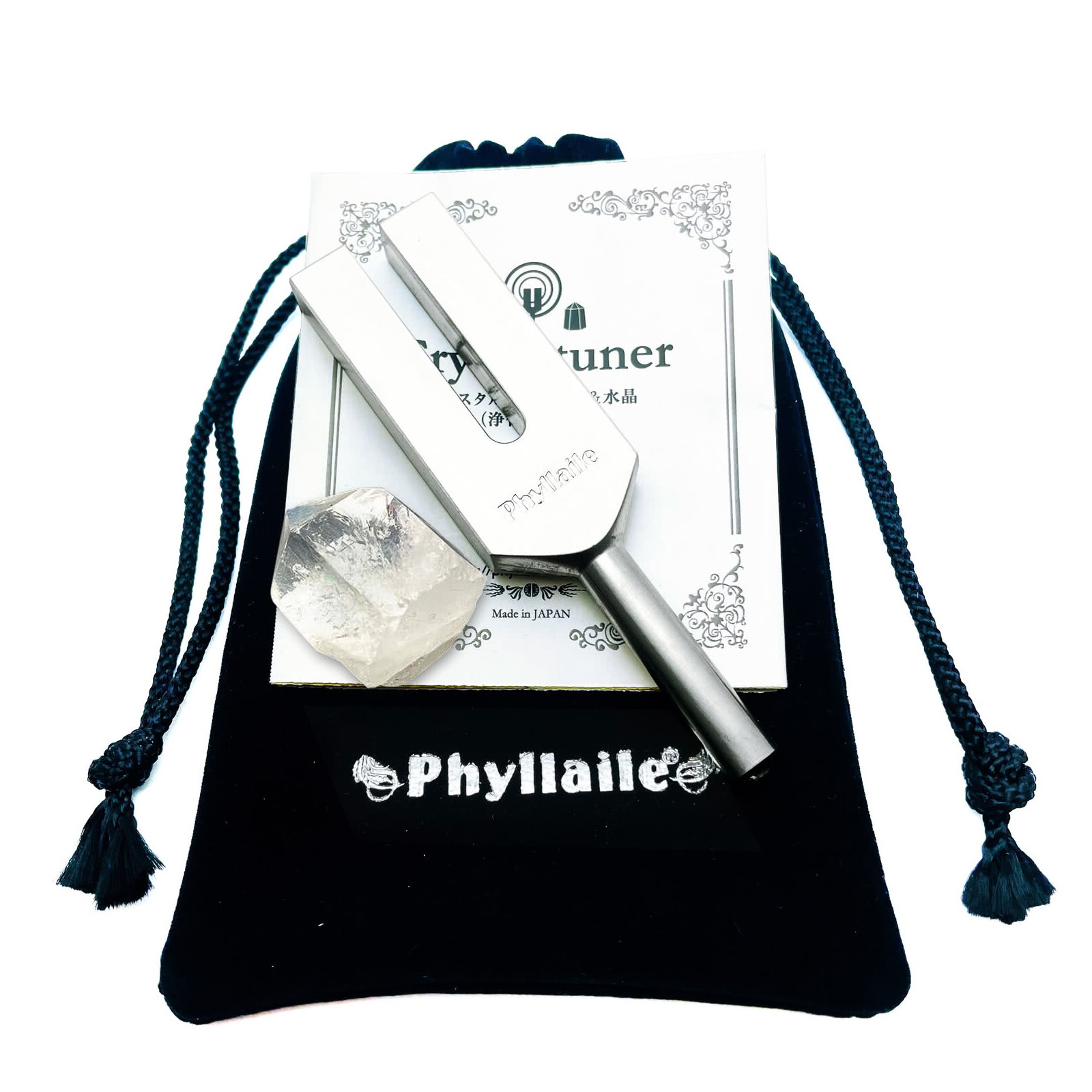 Phyllaileクリスタルチューナー音叉 4096HZ ゴールド 富と繁栄 水晶ポイント原石付き フィレール CT-SET-GOLD