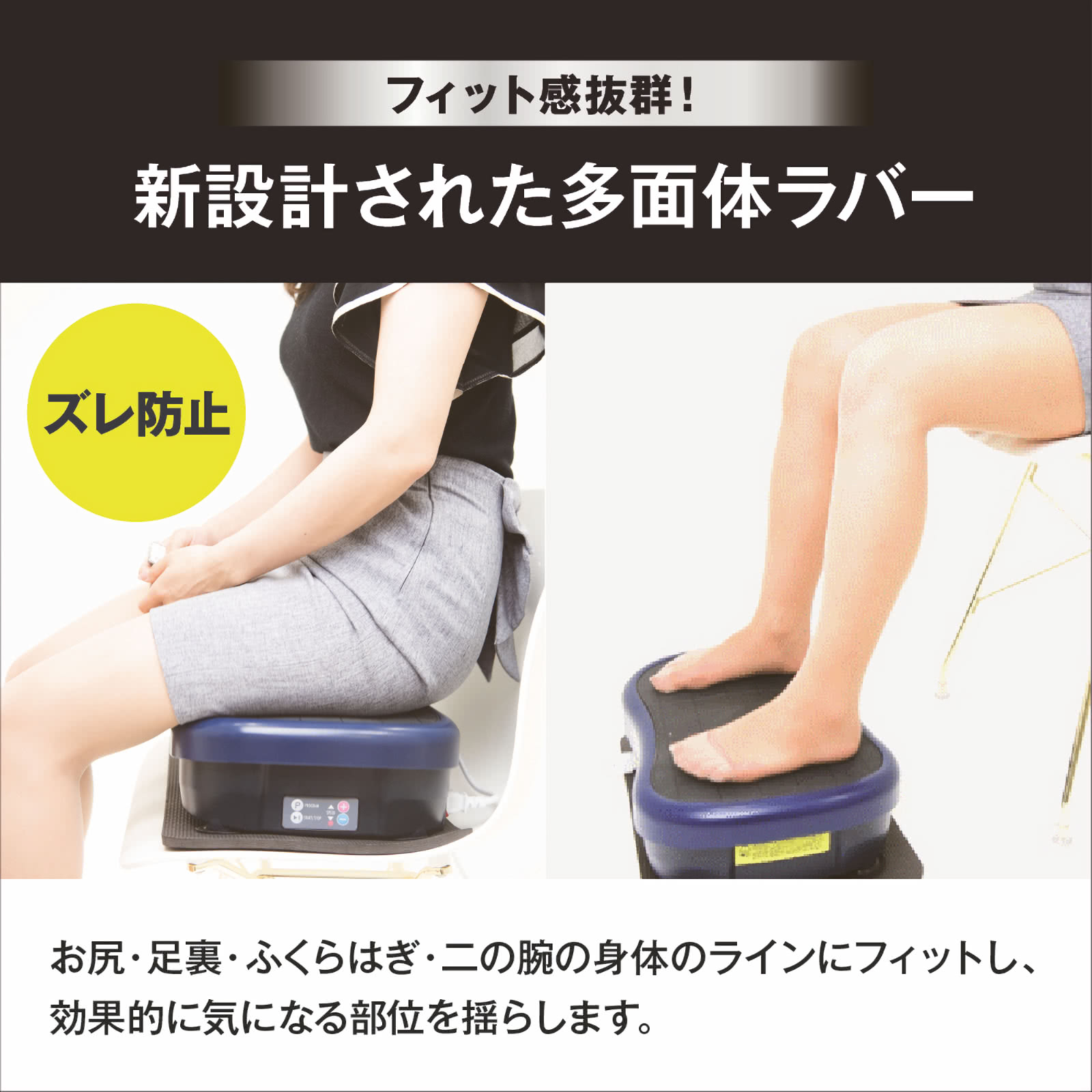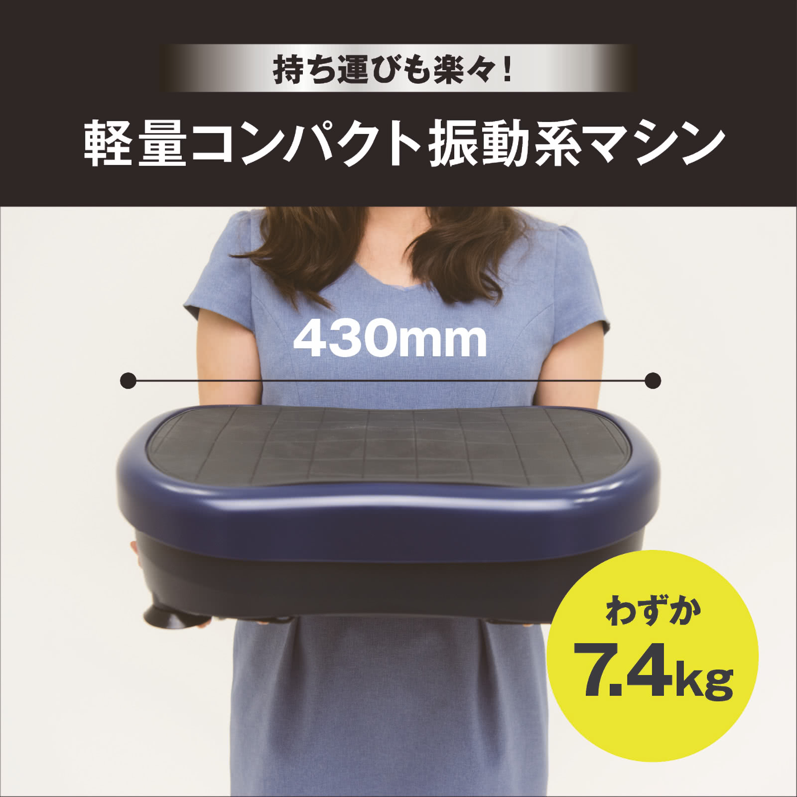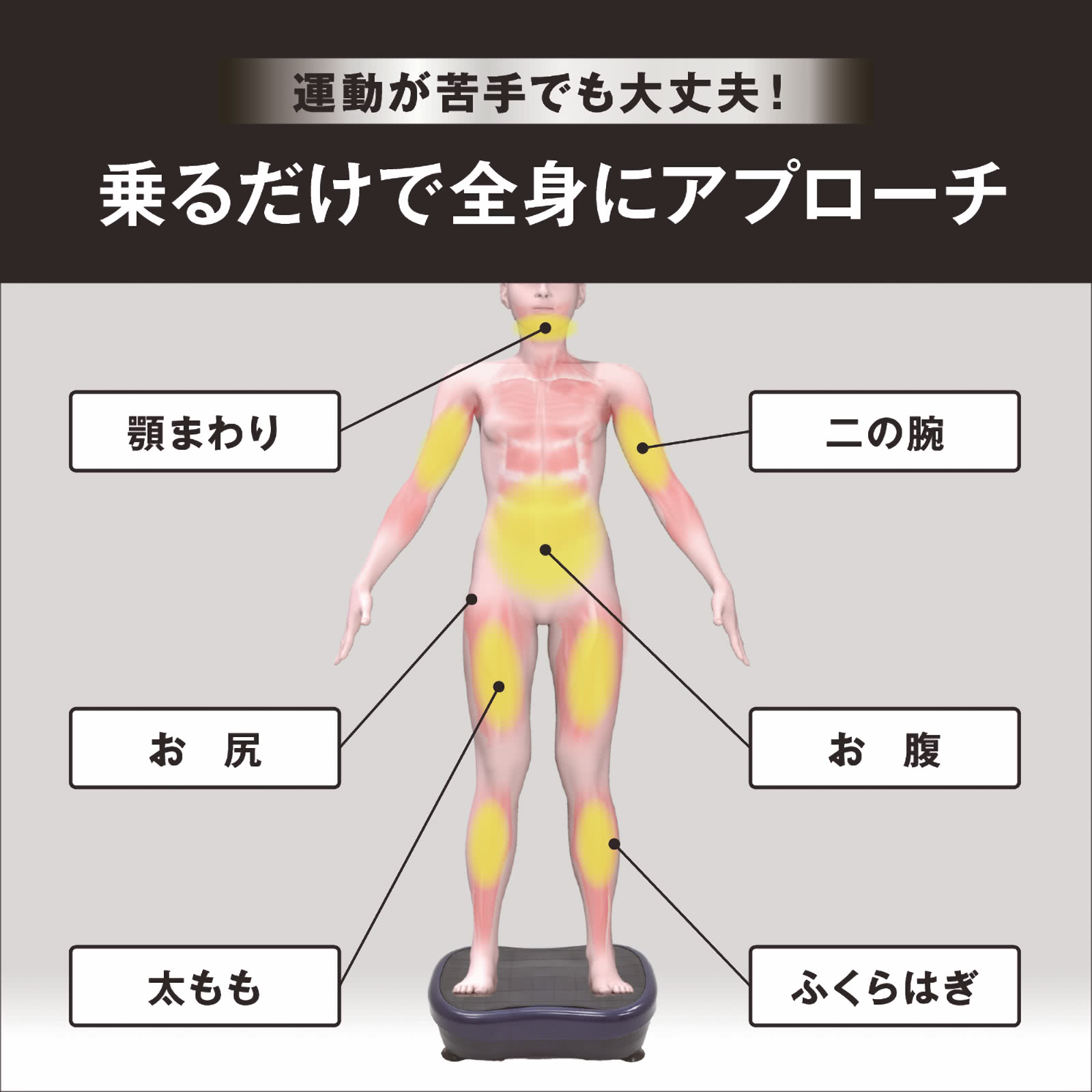 | ●商品名:フルフルボディ WELLSPO eq200-22 ●サイズ・重量:【本体】W約430mm x D約290mm x H約130mm、7.4kg(本体のみ) ●化粧箱サイズ:W 480mm × H 180mm × D 360mm ●最大適応体重:100kg ●素材:【本体】ABS樹脂、PVC樹脂、ゴム、【リモコン】ABS樹脂、PVC樹脂、【専用マット】TPE ●生産地:中国 ●同梱物:本体、電源コード、リモコン、アッパーボディバンド×2、専用マット、CR2025リチウム電池(お試し用)、取扱説明書(保証書付) ◎内容:振動ボートのプロが開発した乗るだけ全身エクササイズ。パワフルな振動で10分間乗っているだけで全身全体を強力に鍛えます。身体を支える筋肉に働きかけるバランスモード(体幹・コアマッスル)、ムダなお肉を揺らすトレーニングモード(燃焼・有酸素)、速度変化と振動の緩急のリフレクションモード(伸縮・弛緩)の3つの立体振動プログラムでインナーマッスルや体幹トレーニングを簡単に。 ※ご使用上の注意 ・ご使用になる前に「取扱説明書」をよくお読みのうえ、正しくお使いください。 ・本来の目的以外に使用しない。事故やトラブルの原因になります。 ・乳幼児や子供の手の届かないところに保管し、使用させないでください。事故やトラブルの原因になります。 ※保管上の注意 ・本製品は防水ではありません。シャワーしながらの使用や湯船に浸けたり、流水により本体の丸洗いは故障の原因となります。 ・使用後、本体を浴室等、湿気の多いところに放置したり、保管しないこと。 |