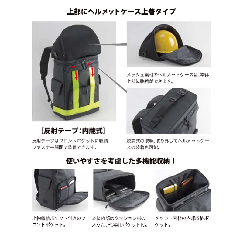 | ●商品名:反射テープ内蔵式リュック リュックサック ワーカーズバッグ ヘルメットケース 作業用カバン 軽量 スタイリッシュ シンプル おしゃれ 便利グッズ 現場用リュック メンズ 男性 iHealing BLACK ●ブランド:FARVIS(ファービス)、型番:2-300 ●サイズ・重量:約幅30cm x 高さ42cm x 奥行13cm、約850g ●容量:37L ●カラー:ブラック ●材質:ポリエステル(PUコーティング) ●用途 おすすめ:現場 鉄道保全作業 建設 土木作業 工事現場 インフラ整備 道路補修 交通整備 交通誘導 警備員 管理 整備 業務 作業員 通勤 通学 ビジネスプレゼント 贈物 屋外 ●販売元:株式会社ディックコーポレーション DIC CORPORATION ●販売店:アイヒーリング本店 正規販売店 ◎内容:JR等の鉄道会社のほか保線作業、土木検査作業、信号作業、電力作業、道路工事、交通誘導、警備作業という中で、夜間に反射テープ装着を義務とする現場作業に向けた現場作業用リュックです。耐水性もあり、雨天や悪天候でもOK。反射テープはフロントポケットに収納可能なので、通勤・プライベートタイム時にはビジネスリュックとしてご利用頂けます。 ☆なぜリュックに反射テープが必要? →多くの夜間作業の現場仕事がある中・・・ ◇例えば線路上の作業で工具を扱うのに両手を自由したい ◇狭い暗いマンホール、高い鉄塔などに上り下りする時使いたい ◇夜間作業台の上での信号、道路工事の旗振り、誘導時等に便利 ◇配電盤作業、運搬車荷台での作業、電柱での工具を使うときに活躍 こんな現場の声・要望からから生まれた反射付きリュックです。 |