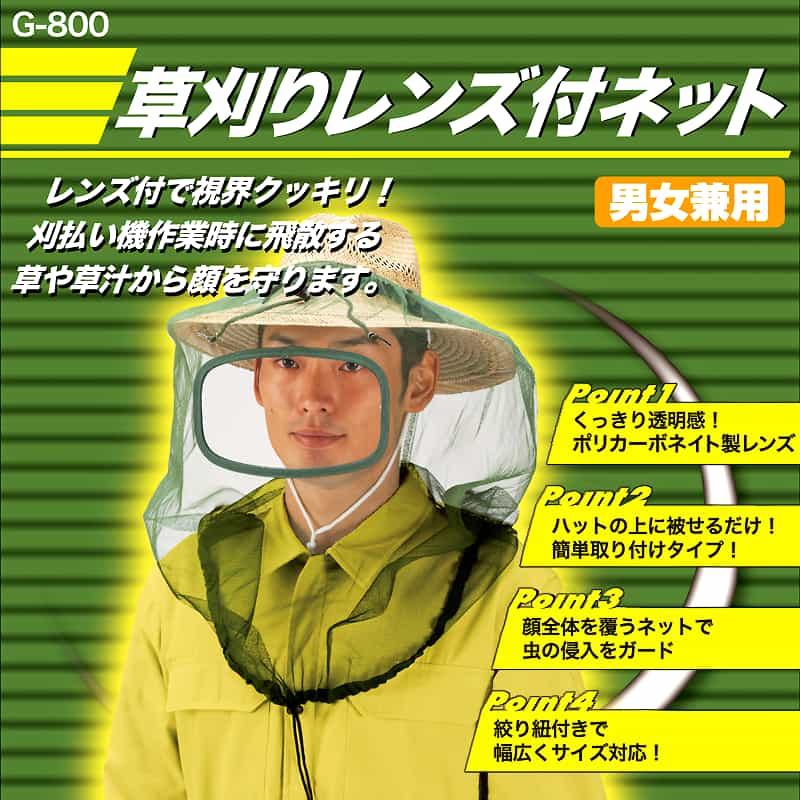 草刈りレンズ付きネット G-800 単品 ポリカーボネイド透明フェイスシールド フェイスガード 防虫 網 ポリエステル ディックコーポレーション