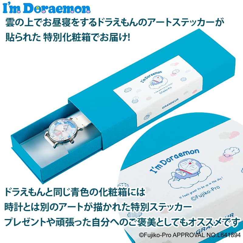 ![]() ![]() ![]() ![]() I'm Doraemon ホワイトのドラえもん腕時計 癒しを届けてくれる白い雲とドラえもん 雲の上で散歩するドラえもんの楽しくて自由な姿を切り取ったウォッチ。 商品のコンセプト ドラえもんが大好きなあなたにおすすめ。この腕時計は、ドラえもんと一緒に青い空を歩くような気分になれる商品です。ドラえもんは、子どもから大人まで愛される人気のキャラクターですが、この腕時計は大人の女性に向けて作られました ドラえもん好きでありながら、日常の装いに上品さをプラスしたい方にぴったりです。腕時計は美しい白いレザーのバンドと、ドラえもんが描かれた青い文字盤を特徴としています。日常使いしやすい品のある仕上がりになっています。また、腕時計はソーラー式なので、電池切れの心配がありません。ドラえもんのようにエコで未来志向な商品です。 商品のストーリー 高品質と遊び心が特徴のウォッチブランドGRANDEUR(グランドール)から、I'm Doraemonデザインの腕時計「ドラえもん青空さんぽモデル」が登場。 ドラえもん青空さんぽモデルは、ドラえもんが雲の上で散歩する様子を表現したウォッチです。ドラえもんは、「雲の上は気持ちがいいよ。空気がきれいだし、景色がすばらしいし、何より自由だからね」と言っています。ドラえもんは、雲の上で散歩するときに、どこでもドアや雲ねんどやきんとフードなどのひみつ道具を使って遊びます。ドラえもんは、「ひみつ道具は、夢と冒険のためにあるんだ。だから、いつでもどこでも楽しく使おうよ」と言っています。この腕時計は、ドラえもんのそんな楽しくて自由な姿を切り取ったような商品です。 ![]() |