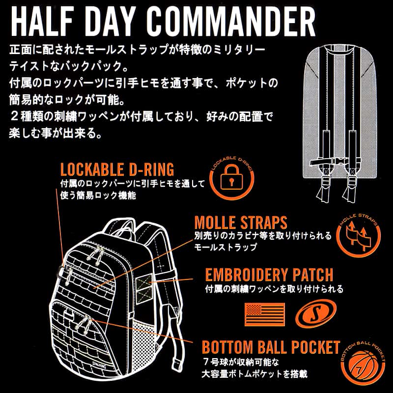 バスケ バッグ ハーフデイ コマンダー ブラック 50-015BK バスケットボール リュック メンズ レディース バックパック 35L スポルディング HALF DAY 正規品