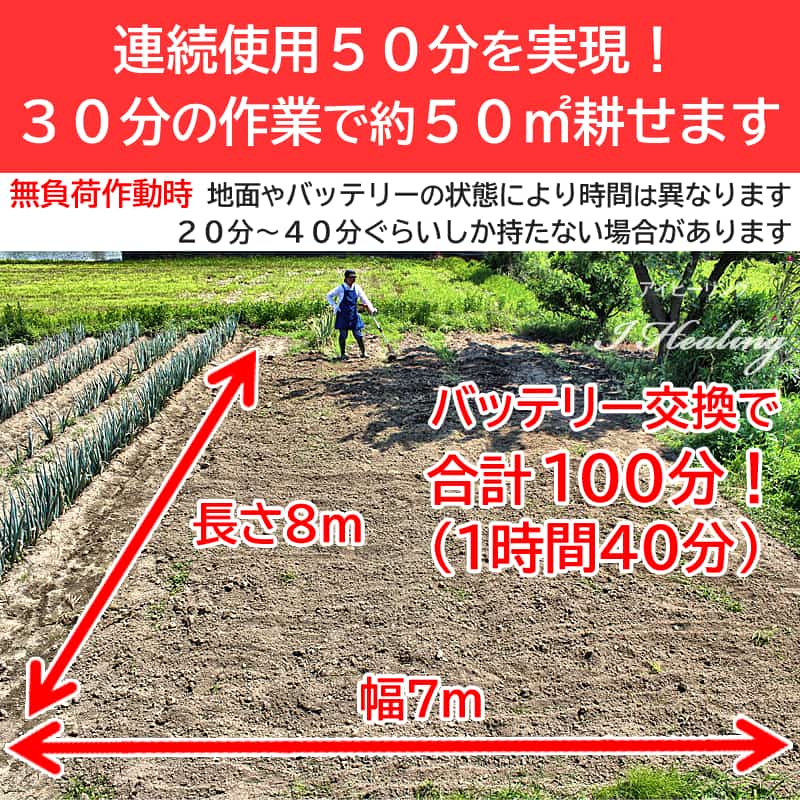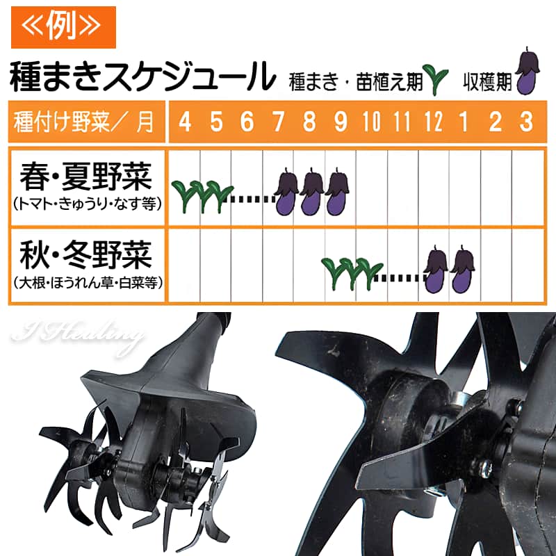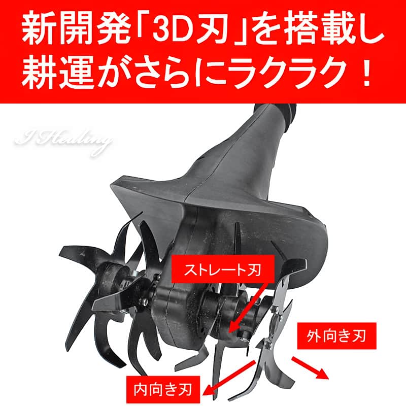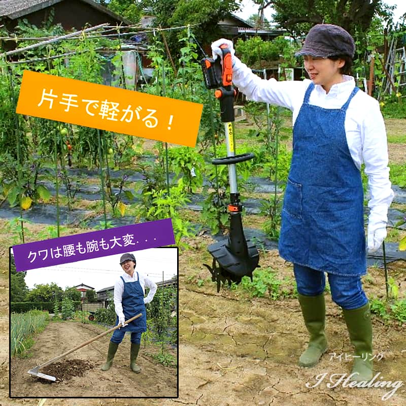 | ●アイヒーリング本店 公式 商品名:YARD FORCE 24Vコードレス耕運機Pro 充電池2個セット 充電式 軽量 ハイパワー家庭用 耕運機プロ サブハンドル付き 伸縮可 角度調節可 にじゅうよんぼると こううんき プロ iHealing 3D耕運機 手押し耕耘機 耕うん機 耕運機ミニ ●型番:LEC20-JP-B ●サイズ:幅22cm×奥行20cm×長さ105cm-135cm ●重量:約3.5kg、バッテリー440g ●材質:ABS、スチール アルミ ●電圧:24V、充電時間:80分急速充電、連続稼働:最長50分(無負荷時)、作業幅約:20cm、作業深度:約8cm ●用途:土を耕す、野菜作り、家庭菜園、ガーデニング、農、農業、土作り、小規模な農地、プレゼント ●販売店:アイヒーリング 正規販売店 ●製造・発売元 メーカー:ヤードフォース 中国製(企画・設計 アメリカ)、1年間品質保証 ●セット内容:耕運機本体、リチウムイオンバッテリー2個 PSE LI-ION BATTERY バッテリー 24VBAT-LTE、充電アダプター 100V ◎内容:家庭菜園を楽しもう。小型で軽い 手で持てる耕運機、女性でも簡単に畑の土を耕せます。バッテリー2個セットの長時間使える耕運機。 ■特徴 3D刃:3方向に向いた刃が土を掘り返し、砕き、混ぜるという特殊な刃のこと。従来の耕運機にはない機能で、どの土の状態にも合わせられる。土の中の雑草や根も切り刻んで、土壌改良に役立つ。 バッテリー2個セット:充電式の耕運機であるため、コードの煩わしさやガソリンの臭い、騒音を気にする必要がありません。バッテリーは2個付属しているので、一つが切れてもすぐに交換できる。充電時間は80分で、最長50分の作業が可能。 小型で軽量:サイズは幅22cm、奥行20cm、長さ105cmから135cmまでで、重量は約3.5kgです。女性や高齢者でも持ち運びやすく、操作も簡単。狭い場所や隅々まで耕せる。収納も場所を取らない。 ハイパワー:24Vの電圧を持つ強力なモーターが回転します。作業幅は約20cm、作業深度は約8cmで、硬い土や湿った土も耕せる。作業効率が高く、時間と労力を節約できる。 調節機能:メインハンドルの長さは105cmから135cmまで伸縮できるので、身長に合わせて調整できる。サブハンドルの位置も変えられるので、バランスよく持てる。メインハンドルの角度も変えられるので、姿勢に合わせて調整できる。 安全性:ダブルスイッチ付きで、誤作動を防ぐ。刃が回転している間は、ハンドルの両方のスイッチを押さなければならない。どちらかのスイッチを離すと、刃が停止する。安全に作業できる。 土作りに悩んでいる家庭菜園を始めたばかりの方にも好評です。軽くて持ちやすく、操作も簡単。3D刃が土をしっかりと掘り返してくれて、土の状態も良くなります。バッテリーも2個あるので、途中で切れる心配もありません。野菜を植えるのが楽しみになります。 花壇やプランターをたくさん作るガーデニングが趣味の方にもおすすめです。この耕運機は、小さくてコンパクトで、花壇やプランターの隅々まで耕せるので、とても便利です。3D刃が土をふわふわにしてくれて、花の根が張りやすくなります。バッテリーも長持ちで、充電も早いので、作業にストレスがありません。花がより美しく咲きます。 |