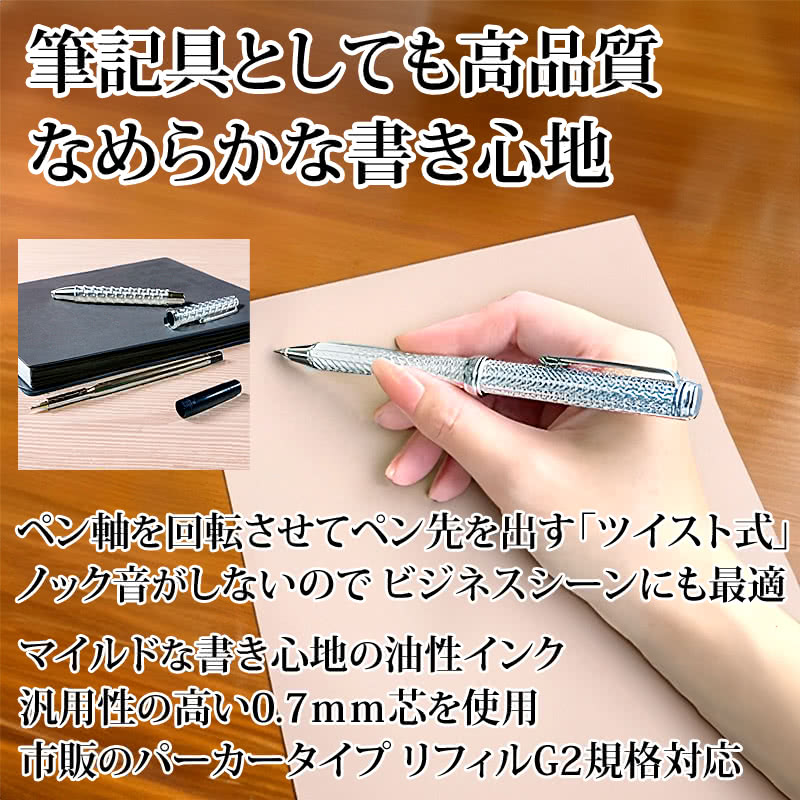 銀製 社長のボールペン 装飾ダイヤモンド付 星柄 熟練工カッティング 株式会社ティアラ 日本製