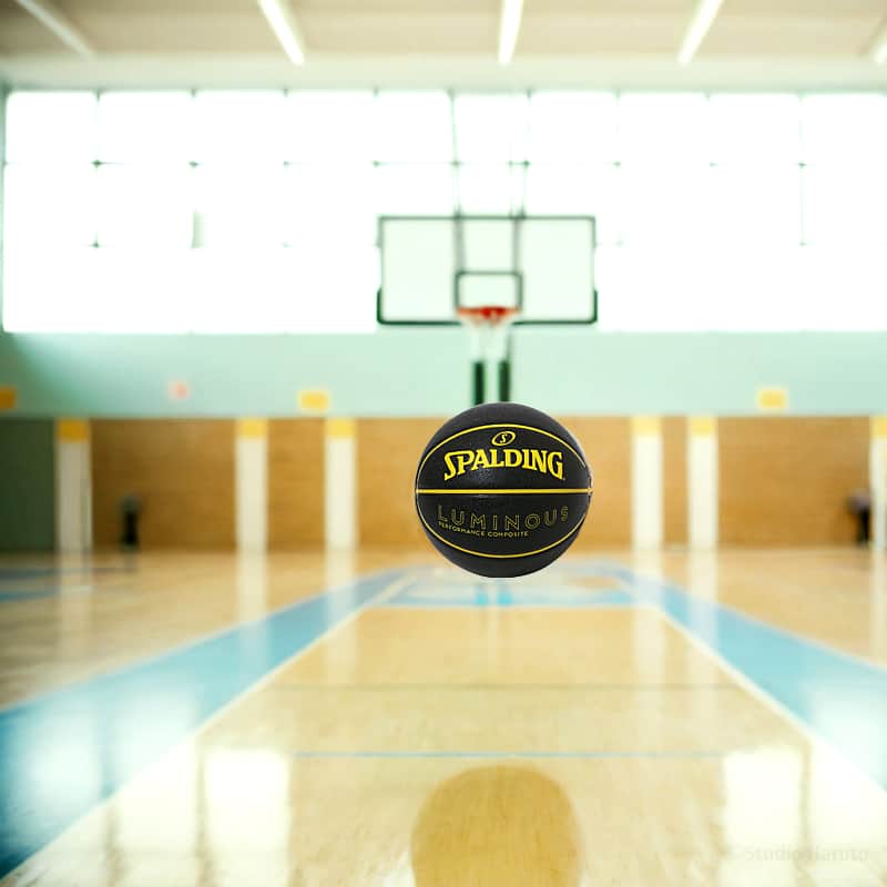 バスケットボール 6号 ルミナス ブラック×ゴールド 77-982J バスケ 合成皮革 屋内 屋外 スポルディング 25SS 正規品