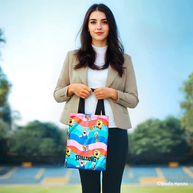 パッカブルトートバッグ スポンジボブ パターン イエロー 50-026SBP A4サイズ 折りたたみ バスケットボールバッグ SpongeBob 24AW 正規品