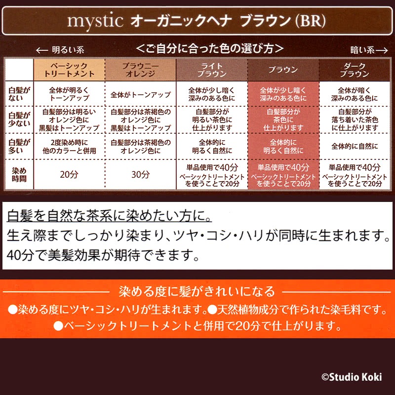 mystic ミスティック オーガニックヘナ ベーシックトリートメント 100g トリプルA認定ヘナ 白髪染めベース 早染め ナチュラル 天然植物成分 USDA エコサート
