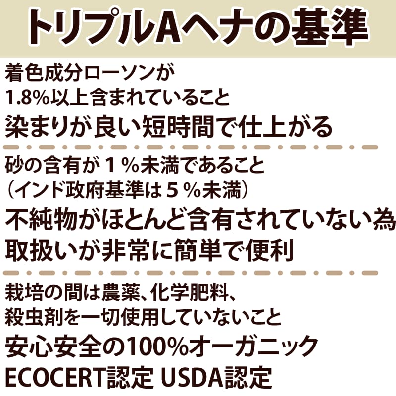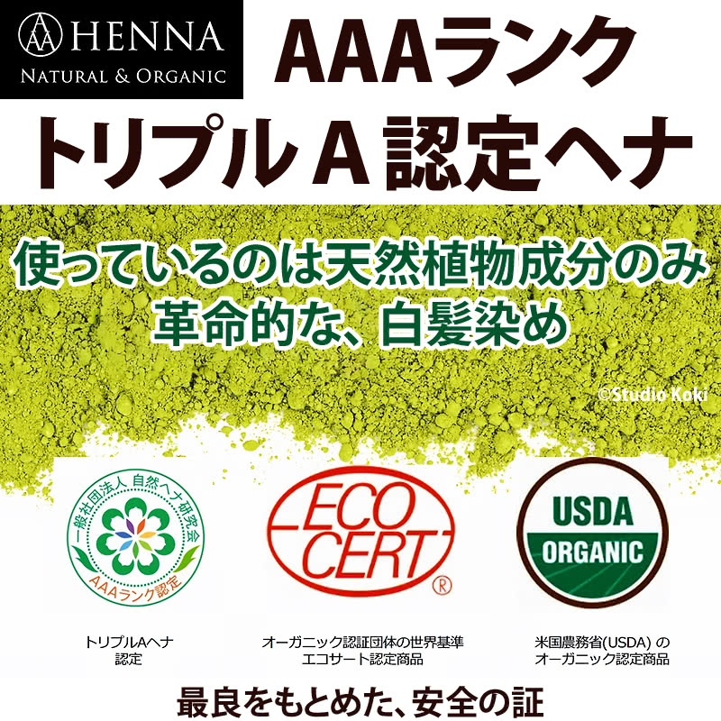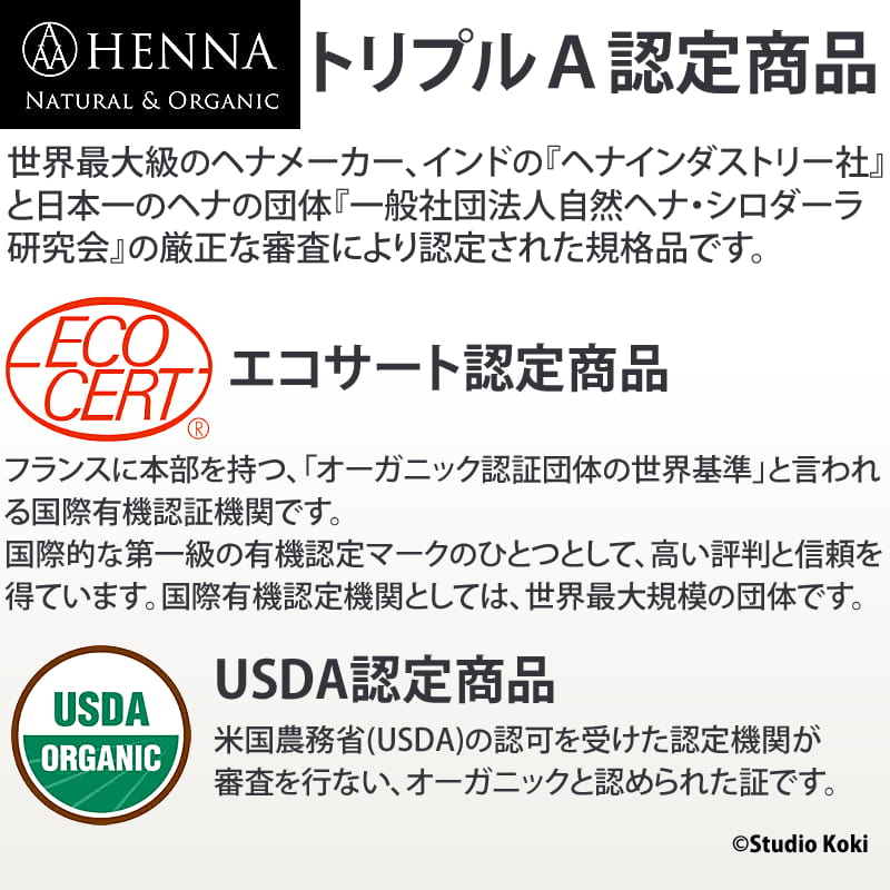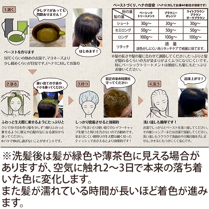 | ●アイヒーリング本店 公式 商品名:AAAランク ミスティック オーガニック ヘナ ダーク ブラウン 白髪染め とりぷるえー USDA認定 エコサート認定 ヘアカラー ヘナdeエステ 自然成分 自然派ヘナ 単品購入 50g2個 iHealing mystic Organic Henna DarkBrown ●型番:ms-si-005、JANコード:4573116070176 ●内容量:50g×2袋 合計100g ●パッケージ商品サイズ:18.5cm×11cm×4.5cm ●全成分:ナンバンアイ葉、ヘンナ、ハイビスカス花、アンマロク果実、グァーガム ●販売店:アイヒーリング 正規販売店 ●用途・おすすめ:ヘアトリートメント、白髪染め、頭皮ケア、キューティクルケア、髪にツヤが欲しい方、ナチュラルヘナを使いたい方 ●原産地:インド産 Made in India ヘナインダストリー社 ◎内容:40分で自然な茶系に仕上がリます。早染め40分。 使っているのは天然植物成分のみ。髪と頭皮にやさしい自然由来の成分で作られたmysticヘナは、国内唯一のトリプルA認定とエコサート、USDA認定を受けたオーガニックヘナを使用した白髪染めです。 mysticは最高級トリプルAヘナを使用し、インドのヘナ最大手のメーカー、ヘナインダストリー社と直接取引をしているため、生産地、製造過程、不純物や危険物の検査(ラボが併設)、保存方法など、全て最高基準をクリアしている製品になります。 白髪を落ち着いた自然な茶系に染めたい方に。 生え際までしっかり染まり、ツヤ・コシ・ハリが同時に生まれます。40分で美髪効果が期待できます。 染めるたびに髪がきれいになる 染める度にツヤ・コシ・ハリが生まれます。天然植物成分で作られた染毛料です。 ベーシックトリートメントと併用で20分で仕上がります。 放置時間40分を目安にお使いください。 退色(色落ち)しにくいためリタッチケアで綺麗な髪が保てます。 ダークブラウン単品でのご使用でも綺麗に白髪染めとして仕上がりますが、ベーシックトリートメントと組み合わせる2度染めをしていただきますとさらに綺麗に、鮮やかに、深く、よりご満足いただける仕上がりになります。 mysticオーガニック白髪染め 自宅でカンタン納得の仕上がりに。白髪もしっかり染まってツヤコシUP。 頭皮エステ。頭皮を健やかにケアしながらキューティクルもしっかりケア。 ニオイが少なく使いやすい。水周りやタオルが汚れにくい。 天然植物成分で染めるたびに艶・コシ・ハリが生まれる。 トリプルAランク天然ヘンナ使用。 最良と安全を求めた最高級Aランクのヘナを使用。手作業で丁寧に砂などの不純物を取り除いた最高ランクのトリプルAヘナです。 今までのヘナと比べてこのようなことが改善されました スーパー早染め。20分から50分くらいの時間で早く染まる。忙しい日常の中でも手軽に使えます。 色持ちアップ。色落ち、退色しにくい為、リタッチケア(白髪が出てきたところ)のお手入れで綺麗な髪が保てます。 お湯に溶けやすくダマになりにくい。なめらかな粘り気。髪につけやすく固まりにくい、垂れ落ちしにくい。 洗い流ししやすい。 ヘナ独特の臭いがほとんどしない。 洗面台やタオル、枕がほとんど汚れない。 |