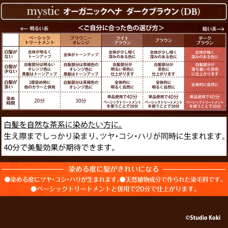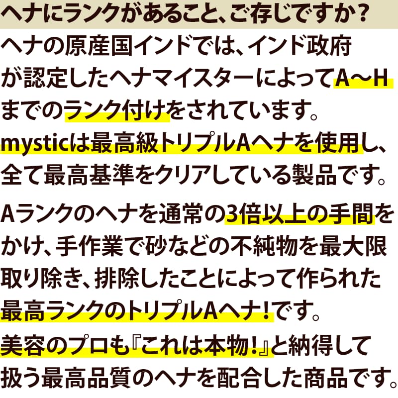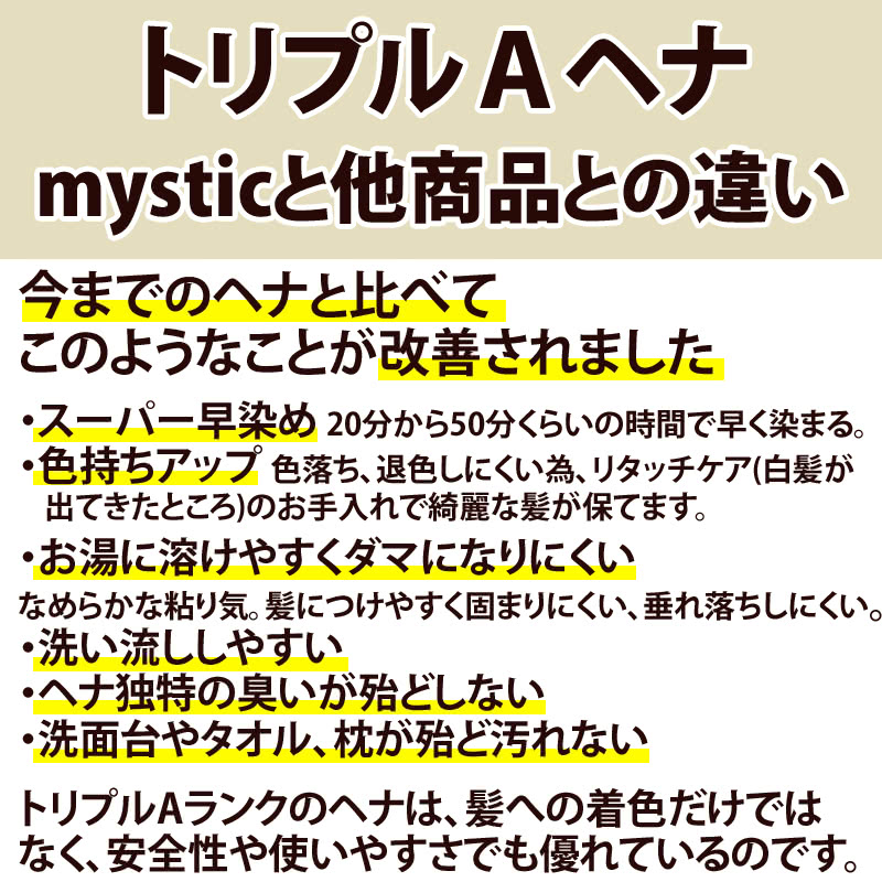 mystic ミスティック オーガニックヘナ ブラウン 100g トリプルA認定ヘナ 白髪染め 早染め ナチュラル 天然植物成分 USDA エコサート