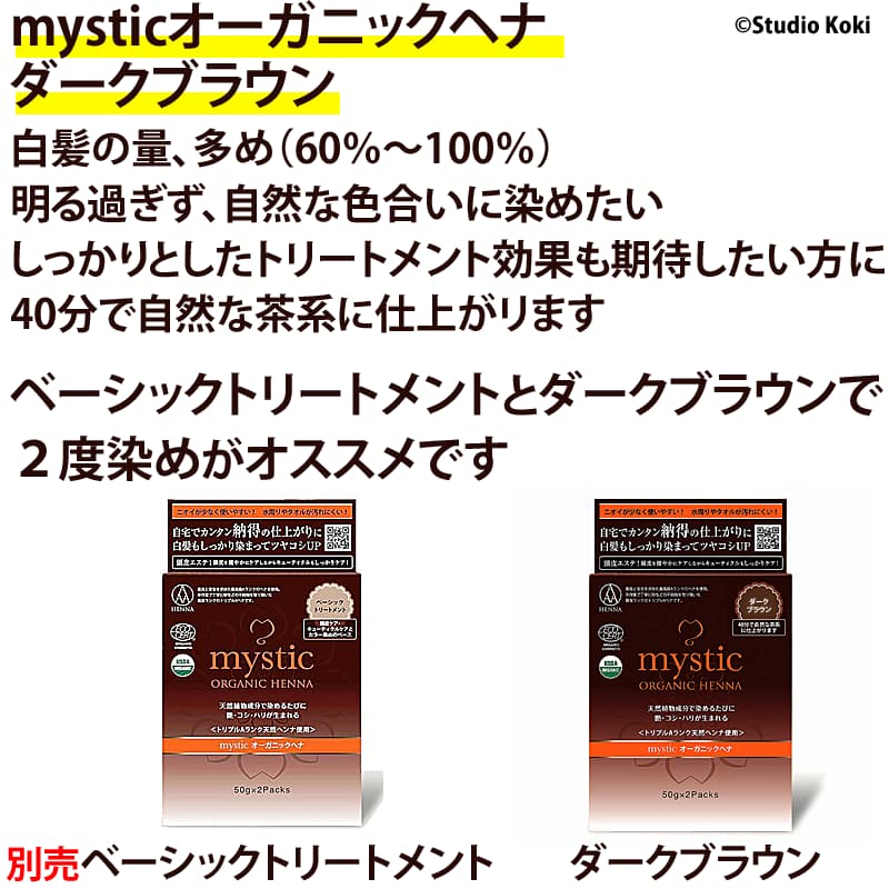 mystic ミスティック オーガニックヘナ ベーシックトリートメント 100g トリプルA認定ヘナ 白髪染めベース 早染め ナチュラル 天然植物成分 USDA エコサート