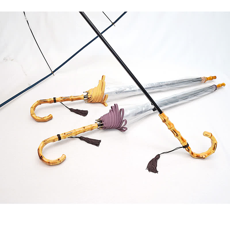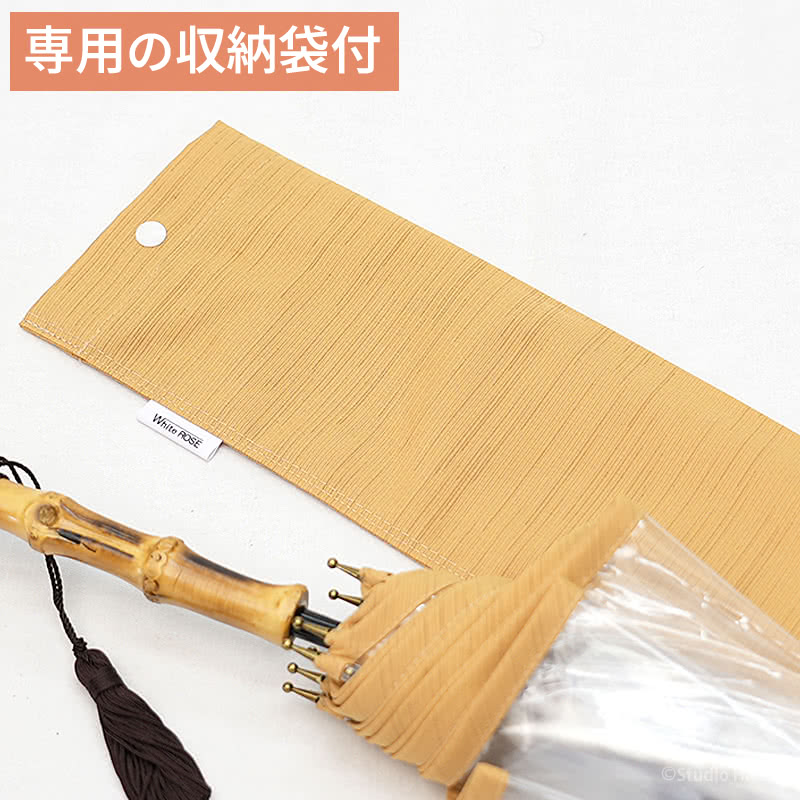 特別仕様フォーマル対応 縁結 雅 えんゆう みやび ホワイトローズ 透明傘 透明ビニール傘 楓天然木 長傘8本骨傘 ビニール雨傘 長傘 日本製 収納傘袋セット