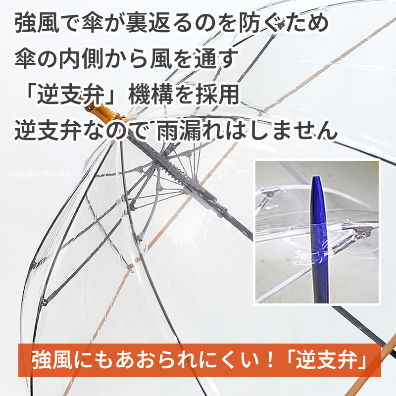 日本製ビニール傘 雨傘 カテールMI7 ブラック ワンタッチジャンプ式 ホワイトローズ 風に強い透明傘 長傘8本骨傘 天然木ハンドル メンズ