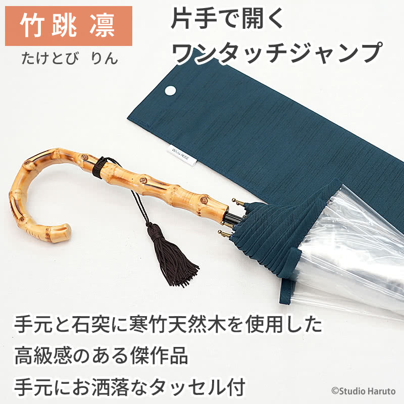 ホワイトローズ 傘 竹跳 凛 からし ジャンプ式 高級ビニール傘 天然木 たけとび りん 長傘 8本骨傘 日本製