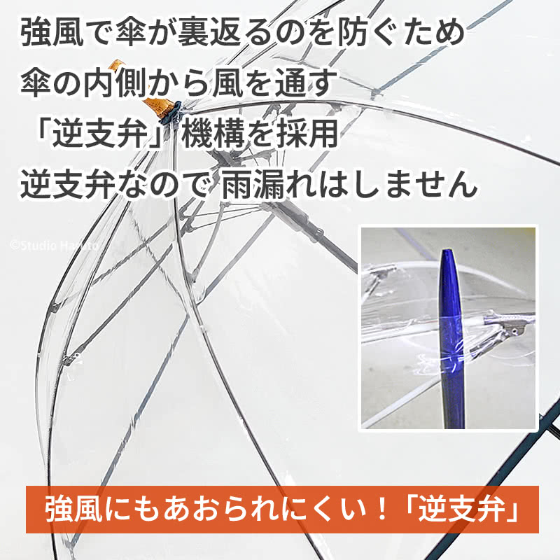 日本製ビニール傘 雨傘 カテールMI7 ネイビー ワンタッチジャンプ式 ホワイトローズ 風に強い透明傘 長傘8本骨傘 天然木ハンドル メンズ