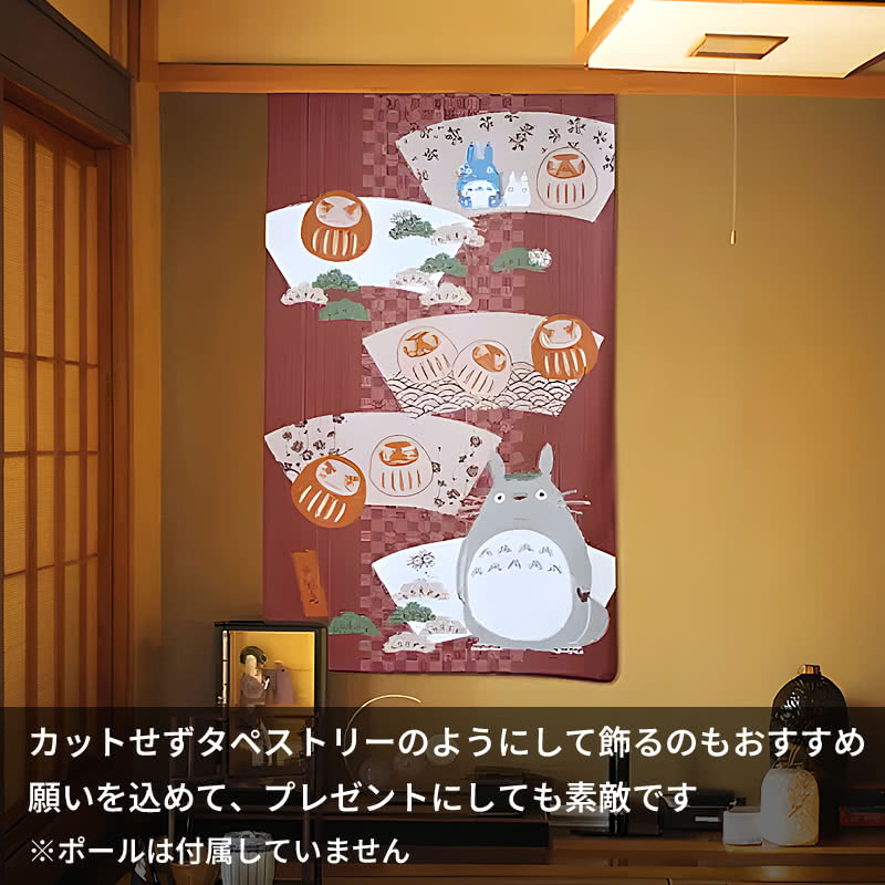 ふくまねきトトロのれん こづち 85×150cm ロング 福をまねく縁起物 となりのトトロ かわいいキャラクター暖簾 間仕切り C-00178