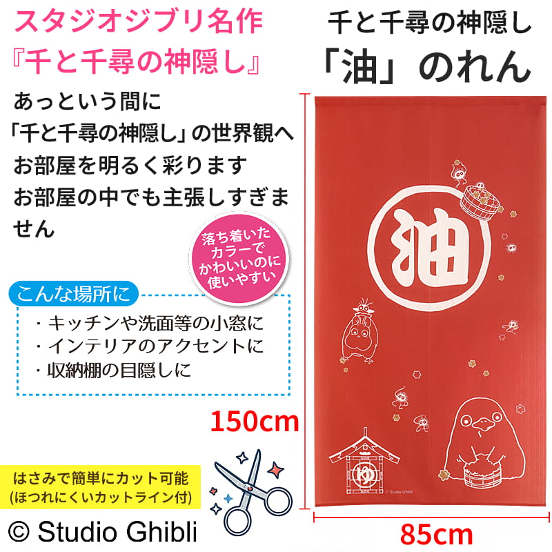 ![]() ![]() ![]() 千尋の世界へ誘う、油のれんの魅力 こののれんを飾るだけで、まるで千尋が迷い込んだ油屋のような、不思議な空間が家に現れます。中央に大きく描かれた「油」の文字は、独特な書体で、映画の雰囲気をそのままに伝えます。 よく見ると、湯婆婆の指示で働く、愛らしい坊ネズミやハエドリ、おなじみのオオトリ様、そしてススワタリたちが、湯桶や建物の周りで楽しげに生活している様子が描かれています。映画のシーンを思い起こさせ、心が温かくなりますね。 赤色は、千尋が聖域を訪れるシーンや、油屋の内部を思い起こさせる、印象的な色です。こののれんを通して、映画の魔法の世界観を日々の暮らしの中で感じてみてはいかがでしょうか。千尋のように、新たな発見が家で待っているかもしれません。 |