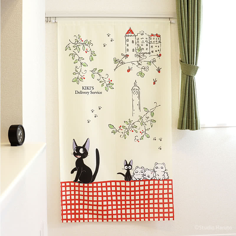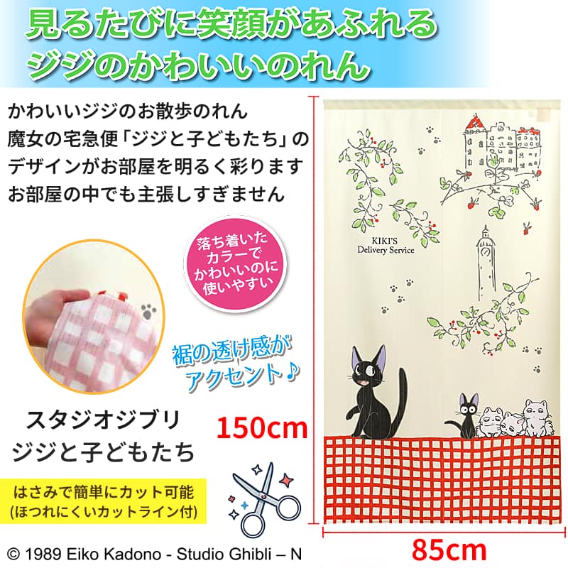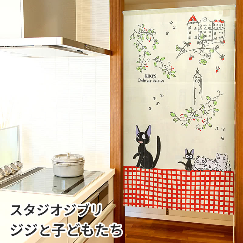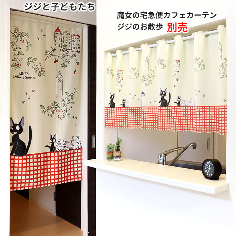 スタジオジブリ 魔女の宅急便カフェカーテン ジジのお散歩 150×47cm 小窓用 黒猫 かわいいキャラクター おしゃれ カーテン 目隠し C-00187 日本製