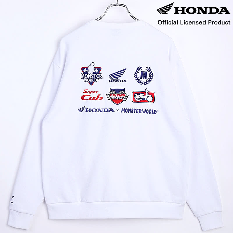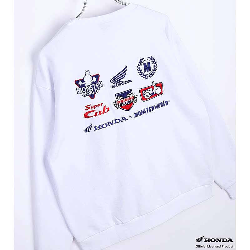 HONDA×MONSTER WORLD トレーナー A ホワイト 刺繍 スウェット 長袖 メンズ レディース ホンダ コラボ 51882803