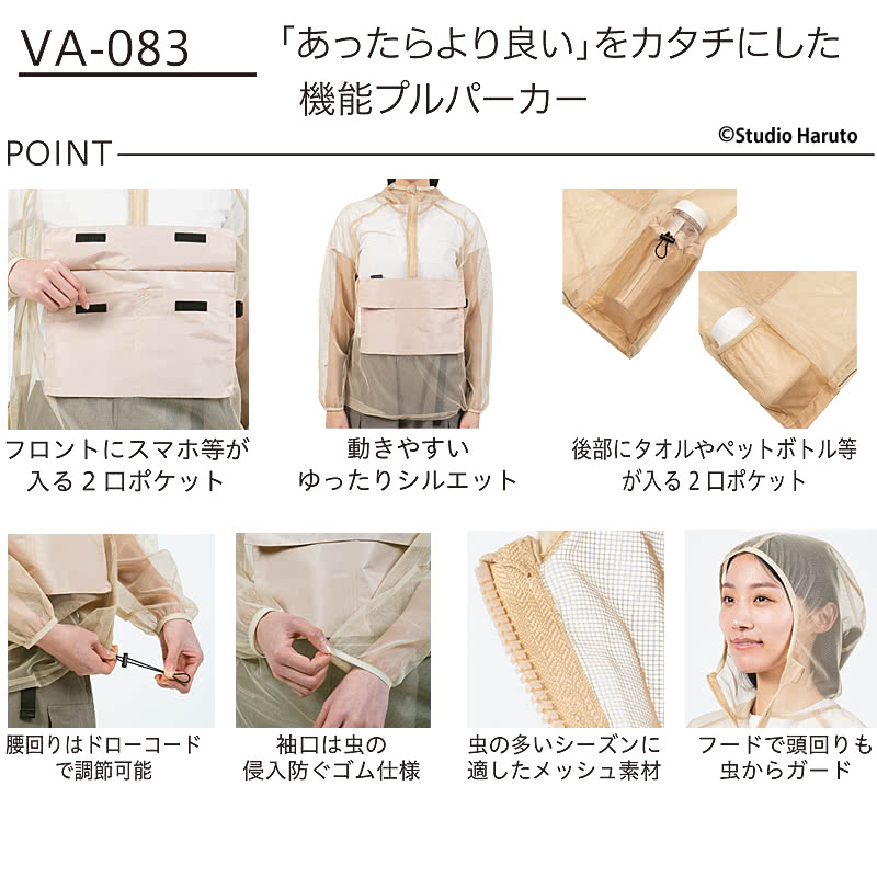 防虫JIS適合 モスキーヒ 服 大人用 虫よけパーカー 単品 カーキ 蚊除け フード マルチポケット付 VA-083 メンズ レディース メッシュ