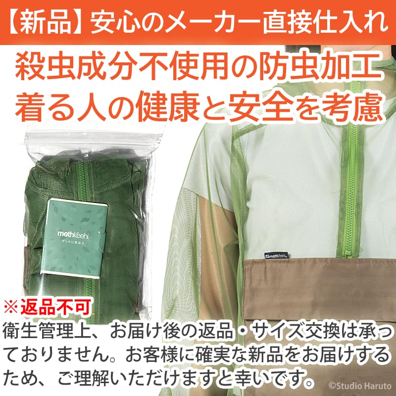 ![]() ![]() ![]() 大人用虫よけパーカー カーキ色 防虫JIS適合 モスキーヒ服は、殺虫成分を一切使用せず、メッシュ構造による通気性と独自の防虫加工によって、蚊などの虫から肌をしっかりと守る高機能ウェアです。フロントと後部にそれぞれ2口ポケットを備え、スマートフォンやタオル、ペットボトルなどの必需品をまとめて収納できるので、両手を自由に使える快適さが魅力。腰回りのドローコードと袖口のゴム仕様が、虫の侵入を最小限に抑えながら体型に合わせたフィット感を提供します。 落ち着いたカーキカラーは、自然に溶け込みやすく、アウトドアシーンで周囲に馴染むだけでなく、普段のカジュアルコーデにも合わせやすいのが特長。男女問わず着用しやすいデザインと機能性を兼ね備えているため、ガーデニングやフェス、登山、キャンプなど、さまざまなシーンで活躍します。メッシュ素材ならではの軽やかさと通気性が、暑い時期の着用ストレスを軽減し、アクティブに動き回っても蒸れにくく快適です。 カーキカラーは明るい色に比べて昆虫を引き寄せにくい傾向があると言われています。また、着用後は軽くブラッシングしてホコリや汚れを落とし、風通しの良い場所で十分に乾かしてから保管すると、防虫加工をより長く維持できます。特に汗をかいたり、雨で濡れた状態のまま放置するとカビやニオイの原因になりやすいため、こまめなお手入れが長持ちの秘訣です。シーズンオフには使用頻度に応じて手洗いし、直射日光や高温多湿を避けて保管すると、来年以降も快適にお使いいただけます。 ![]() ![]() モスキーヒ洗濯表示 洗濯処理:液温は40℃を限度とし、手洗いによる洗濯処理ができる。 漂白処理:漂白処理はできない。塩素系および酸素系漂白剤の使用禁止。 タンブル乾燥:タンブル乾燥禁止。洗濯処理後のタンブル乾燥処理はできない。 自然乾燥:日陰でのつり干し乾燥がよい。 アイロン仕上げ: 底面温度110℃を限度として、スチームなしでアイロン仕上げができる。 ドライクリーニング:ドライクリーニング禁止。 ウエットクリーニング:非常に弱い処理のウエットクリーニングができる。 手洗い後形を整えて日陰で陰干ししてください。 熱乾燥は絶対にお避けください。 使用上のご注意 ・この商品は虫から顔や頭を完全に保護するものではありません。過度な期待はしないでください。肌がネットに密着していると刺される可能性があります。この商品以外にもある程度の守る対策をしてください。 人体に大きな危険を及ぼす恐れのある虫への対策としてはご使用にならないでください。 ・洗濯の際は、洗剤や柔軟剤を使わずに弱めの手洗いで洗ってください。 ・熱乾燥はお避けください。 ・着用中の摩擦や汗により、他のモノに色移りすることがありますのでご注意ください。 ・体質により、かゆみ、かぶれ等の異常を感じた場合はごこ使用をおやめください。 ・商品を火気に近づけないでください。 ・回転機器を使用する作業では商品が巻き込まれないように十分ご注意ください。 |