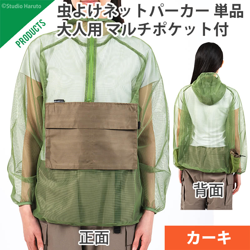 防虫JIS適合 モスキーヒ 服 大人用 虫よけパーカー 単品 ベージュ 蚊除け フード マルチポケット付 VA-083 メンズ レディース メッシュ