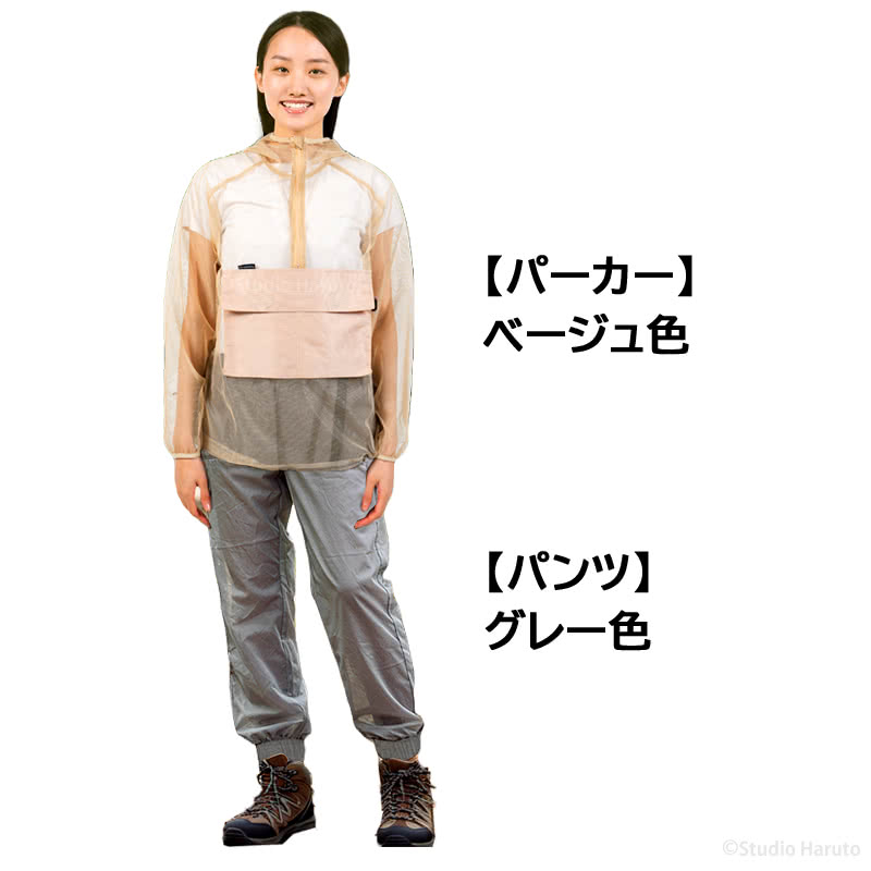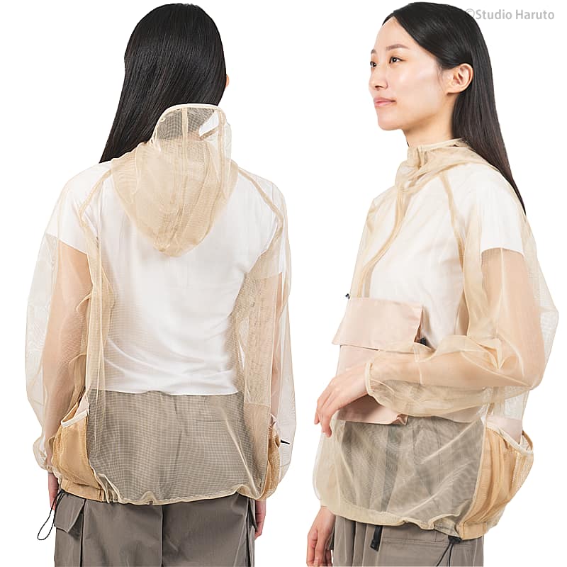 防虫JIS適合 モスキーヒ 服 大人用 虫よけパーカー 単品 ベージュ 蚊除け フード マルチポケット付 VA-083 メンズ レディース メッシュ