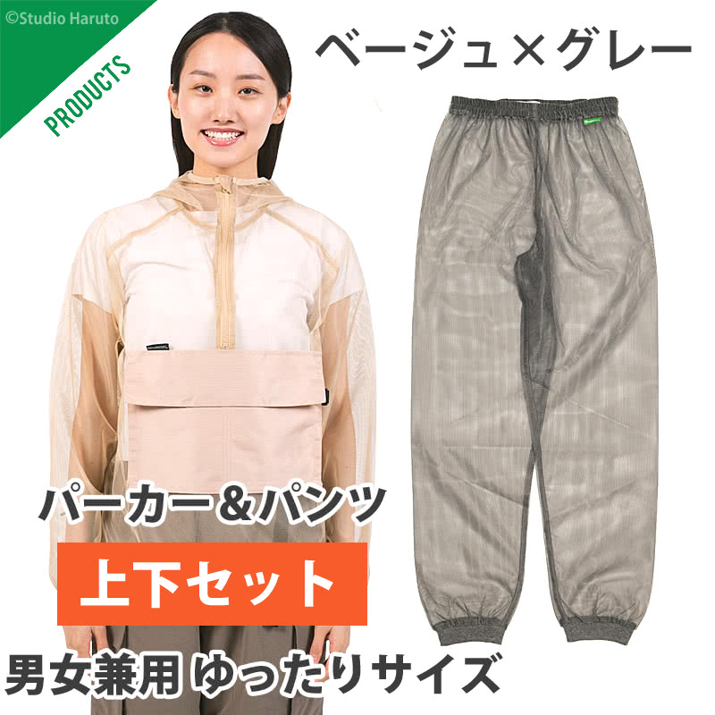 防虫JIS適合 モスキーヒ 服 大人用 虫よけネットパンツ 単品 グレー 蚊除け VA-082 メンズ レディース メッシュ