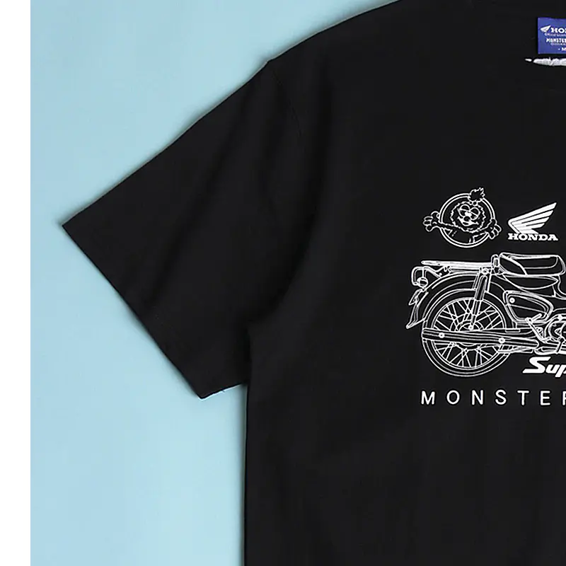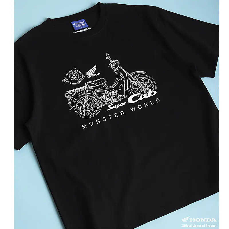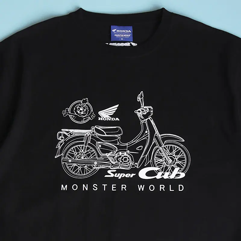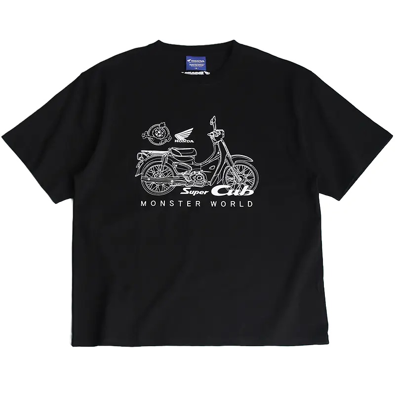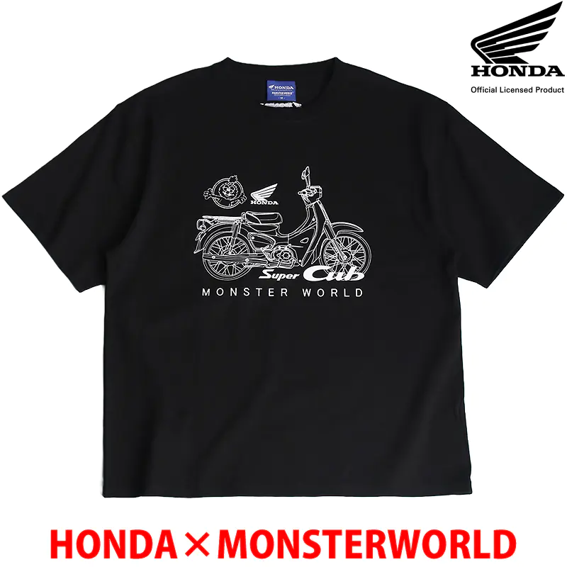 HONDA×MONSTER WORLD 半袖 Tシャツ クロスカブ CC110 ブラック 綿100% クルーネック メンズ レディース ホンダ コラボ ラインアート 53882805