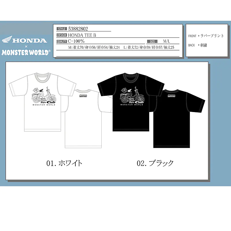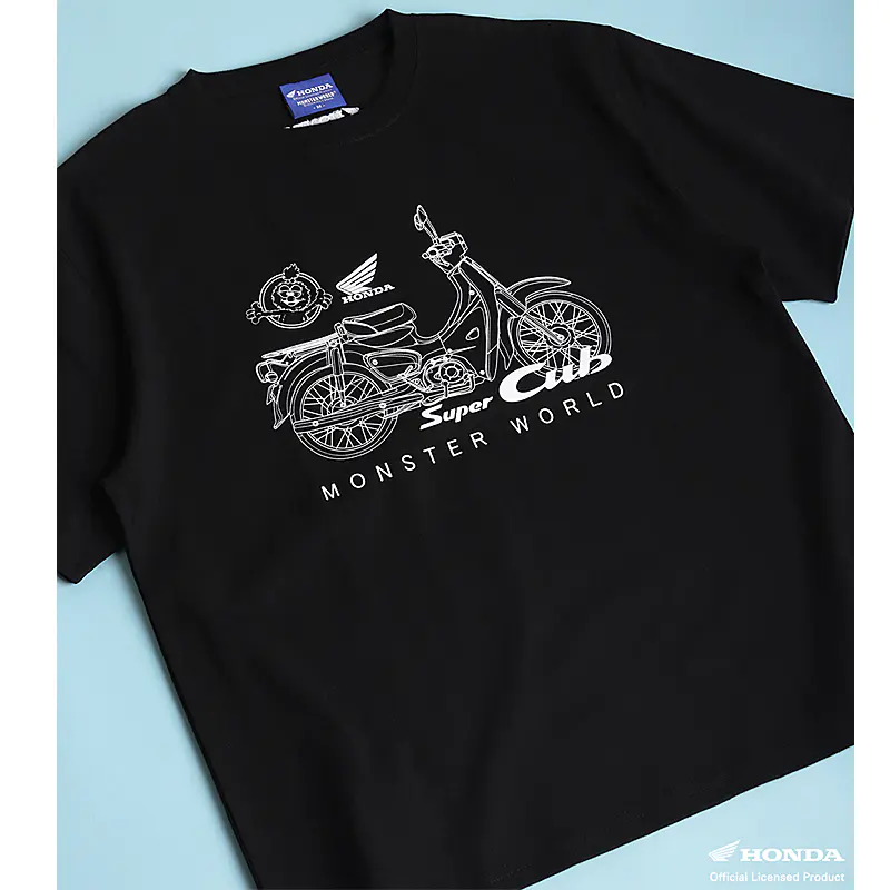 HONDA×MONSTER WORLD 半袖 Tシャツ スーパーカブ ホワイト 綿100% クルーネック メンズ レディース ホンダ コラボ ラインアート 53882802