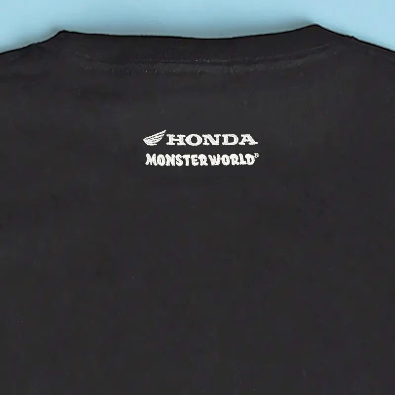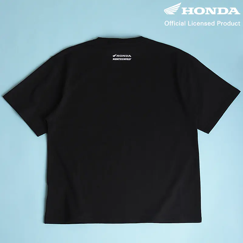 HONDA×MONSTER WORLD 半袖 Tシャツ MOTRA ブラック 綿100% クルーネック メンズ レディース ホンダ コラボ モトラ バイクイラスト 53882804