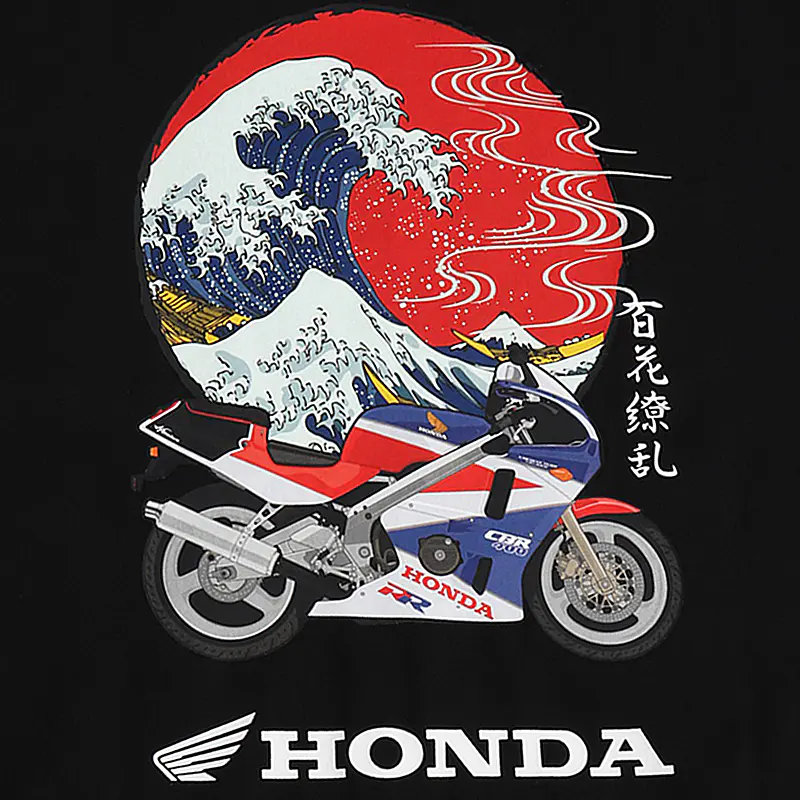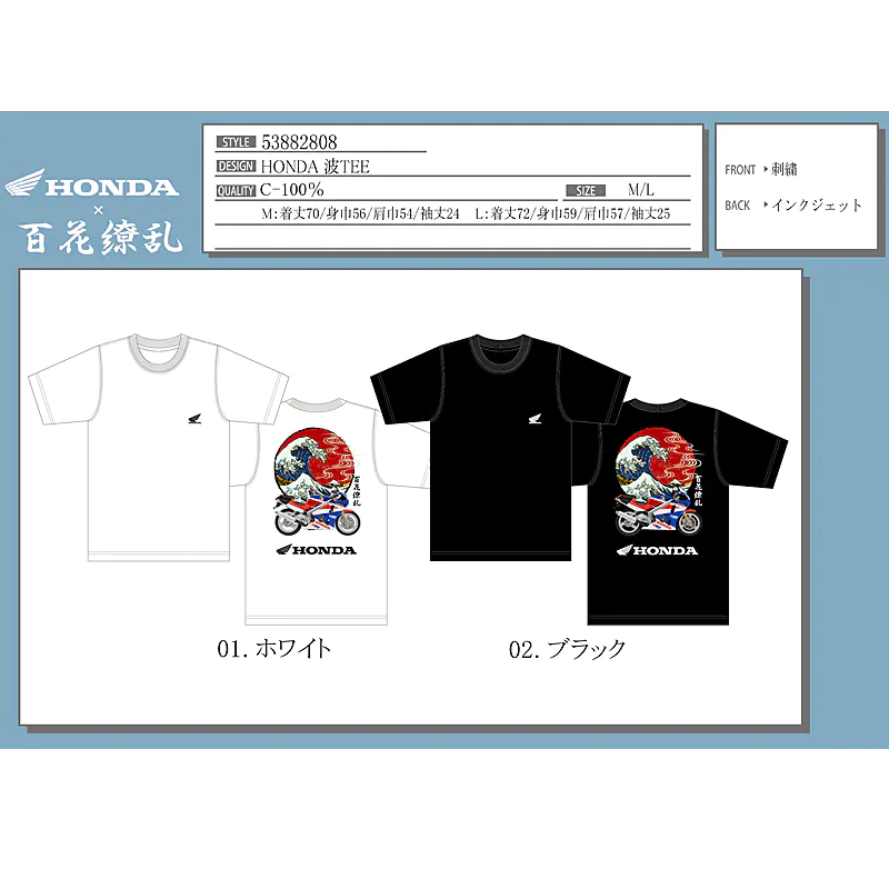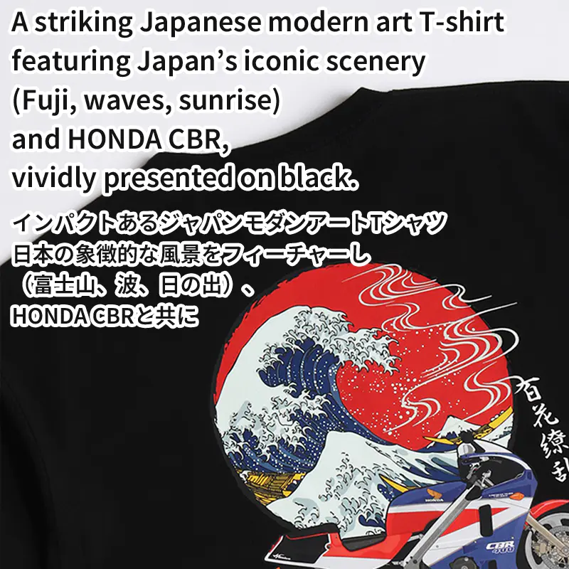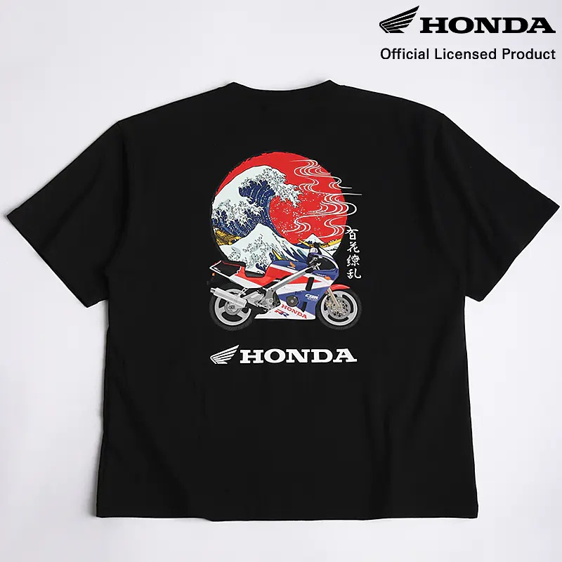 ![]() ![]() ![]() HONDA×百花繚乱 バイクTシャツ 波 CBR ブラック 世界が誇るジャパニーズモーターカルチャーと、日本伝統美を織りなす百花繚乱が融合。 本田技研工業の名車CBRが、葛飾北斎を想起させる荒波の中を駆け抜け、背後には凛とそびえる富士山。そして、朱赤に染まる朝日がその情景を包み込むように円相を描き、視線を引きつけて離さない。まさにアートとマシンの共鳴。 フロントは潔く、左胸に刺繍されたウイングマークのみ。抑制の効いたデザインが、バックのドラマティックなプリントを際立たせる設計です。 シルエットは今どきのゆるさを意識したオーバーサイズ。肩を落としたドロップショルダーがストリート感を演出し、ライディング後のオフタイムでもそのまま街に溶け込める汎用性の高さが魅力です。 CBRという伝説的なマシンと、百花繚乱が描く力強い和柄の融合は、単なるコラボレーションを超えた芸術作品です。このTシャツを身に纏うことは、HONDAが培ってきたモータースポーツの魂と、日本の伝統美、そして現代ファッションの感性を同時に表現することに他なりません。バイクイベントはもちろん、街着としても存在感を放ちます。これは、ワードローブに特別な一枚を加えたい方、日本のデザインやカルチャーを愛する方、そして何よりHONDAのスピリットに共感する方にとって、間違いなく最適な選択となるでしょう。手に取れば、その素材感、プリントの鮮やかさ、そして洗練されたシルエットに、きっとご満足いただけるはずです。 ![]() |