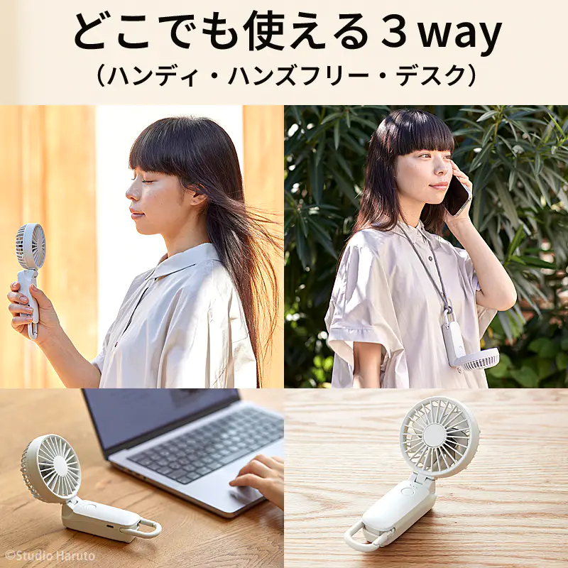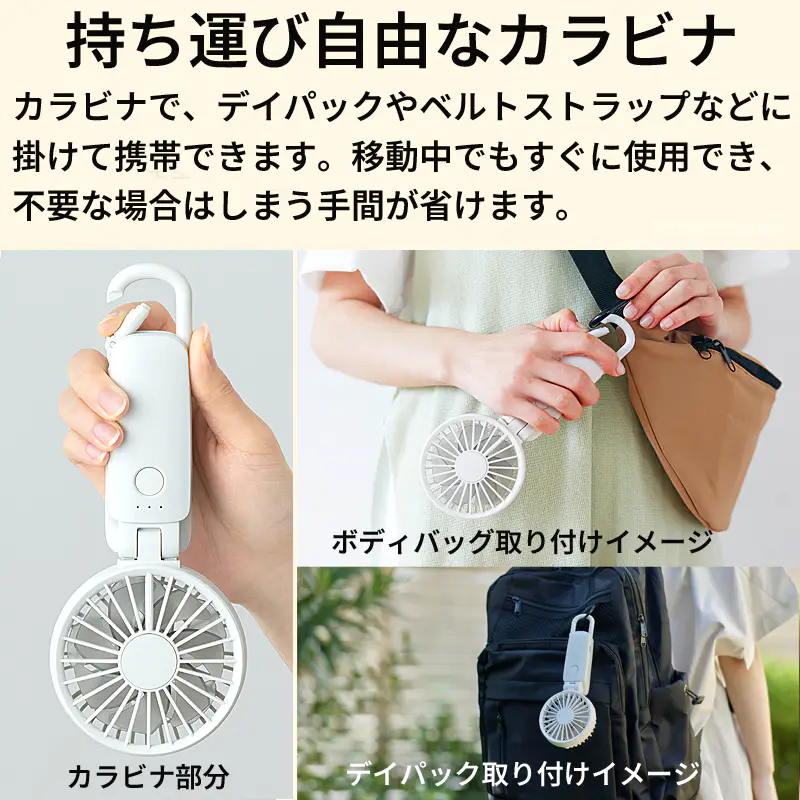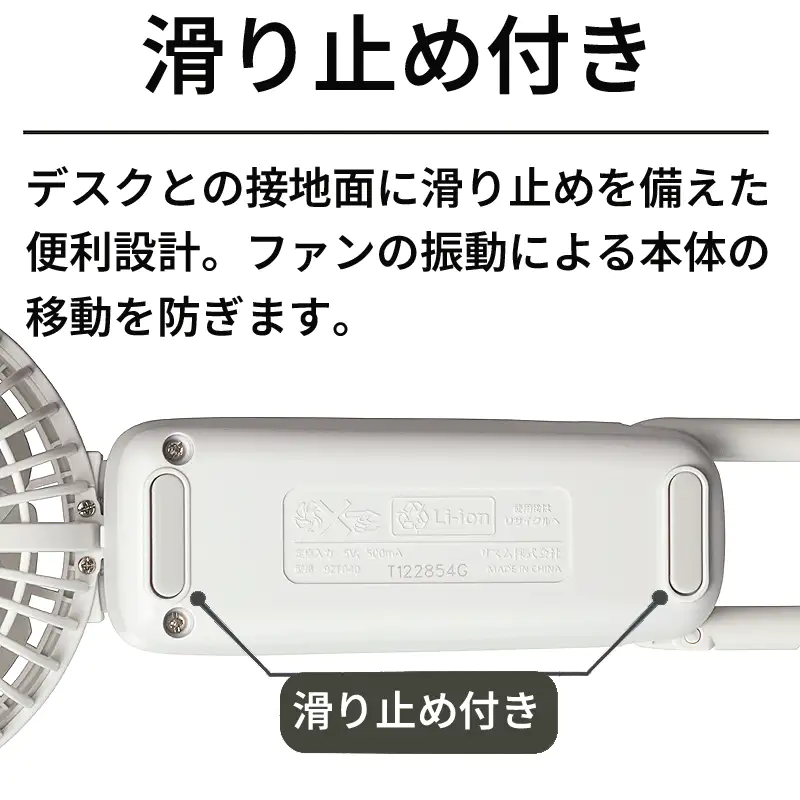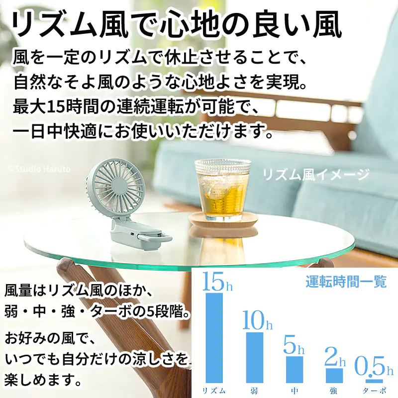 発送目安 : -![]() ■選ばれるには、理由があります RHYTHMが叶える、ひとつ上の涼しさ 日常を快適にするだけでなく、持つ喜びまで与えてくれる。 Silky Wind Mobile 3.2は、細部に宿る技術と使いやすさへのこだわりで、あなたの夏を格上げします。 なぜ、この一台が選ばれるのか それは、RHYTHMだけが実現できる「心地よさと信頼性」の融合にあります。 独自の2重反転ファンが生み出すパワフルで直進性のある風、使う人を思い抜いた安全設計、そして日常に溶け込む洗練されたデザイン。 一度手にすれば、もう他のハンディファンには戻れません。 リズム独自の革新技術「2重反転ファン」 本製品の心臓部である2重反転ファンは、2つのファンが互いに逆方向に回転するリズム独自の機構です。後ろのファンで効率的に空気を集め、前のファンがその空気を強力な筒状の風へと整えて送り出します。これにより、本体はコンパクトなまま、一般的なハンディファンとは一線を画す、驚くほどパワフルで直進性の高い風を生み出すことに成功しました。 お客様の声で進化を遂げた「Silky Wind Mobile 3.2」 ご好評いただいた前モデルをベースに、お客様から寄せられた貴重なご意見を真摯に受け止め、機能を見直しました。待望の「リズム風」を追加し、長時間のご使用でも快適性を追求。充電状況がひと目でわかる3段階の残量表示ランプを新たに搭載。さらに風量「ターボ」の後に電源が切れるのではなく、「リズム風」に戻ることで、より直感的でシームレスな操作性を実現しました。 3Wayで、どこでも涼しく ハンディ・首かけ・卓上の3WAY仕様で、シーンに合わせて自在に変形。 デスクで使う際は、ファン部分を無段階で最適な角度に調節可能。付属のストラップでハンズフリーにすれば、移動中や作業中も涼しく快適です。バッグやベルトに簡単に取り付けられるカラビナは、使いたい時にすぐに取り出せるアクセスの良さを提供します。ボタンを1秒長押ししないと電源が入らない誤作動防止機能は、バッグの中での意図しない起動を防ぎ、大切なバッテリー消費を抑えるための配慮です。 老舗メーカーならではの信頼性と、日常を彩る洗練デザイン。 ただ涼むための道具ではなく、あなたの一日にスマートにフィットするパートナーとして。 RHYTHMの「Silky Wind Mobile 3.2」で、ワンランク上の快適な夏をお過ごしください。 ![]() ![]() ■主な特徴 ・どこでも使える3way。ハンディ、首掛け、卓上の3WAYで使用可能。 ・バッグやベルトに取り付けられるカラビナ付き。 ・ファン部の角度は最大約110度の範囲で調節可能。 ・2重反転ファンとDCブラシレスモーター2基を搭載。 ・5段階の風量切替が可能(リズム風・弱・中・強・ターボ)。 ・誤動作防止機能付き(1秒長押しで電源ON/OFF)。 2重反転ファンでコンパクトなのに大風量 リズム独自の2重反転ファンを採用し、コンパクトサイズなのに大風量を実現。 後ろのファンで空気を集め、前のファンで筒状の風を届けます。 持ち運び自由なカラビナ カラビナで、デイパックやベルトストラップなどに掛けて携帯できます。移動中でもすぐに使用でき、不要な場合はしまう手間が省けます。 リズム風で心地の良い風 風を一定のリズムで休止させることで、自然なそよ風のような心地よさを実現。 最大15時間の連続運転が可能で、一日中快適にお使いいただけます。 風量はリズム風のほか、弱・中・強・ターボの5段階。お好みの風で、いつでも自分だけの涼しさを楽しめます。 便利な充電残量表示 使いやすさを向上させ、電源をONにすると3つの窓で現在の充電残量をわかりやすく表示する機能。 USBケーブルを接続して充電している際も、点滅と点灯で現在どのくらい充電ができているか把握することができます。 滑り止め付き デスクとの接地面に滑り止めを備えた便利設計。ファンの振動による本体の移動を防ぎます。 置いて使用する際は、水平で振動が少ない安定したところに設置してください。また、底面のクッションにほこりなどが付着した場合、振動により本体が移動することがあります。定期的にクッションに付着したほこりを取り除いてください。 ファン部の角度を調節する ファン部は、最大約110°の範囲内で自由に調節できます。 セット内容 ハンズフリーで使用する際のネックストラップと充電用のUSBケーブル(USB Type-A to C)付属。 ■製品仕様詳細 風量および連続使用時間 (満充電時) 風量切替:5段階 (リズム風・弱・中・強・ターボ) リズム風:約15時間 弱:約10時間 中:約5時間 強:約2時間 ターボ:約30分 ※ターボモードは安全のため、充電していない状態で最大30分で自動停止します。 充電関連仕様 充電池:リチウムイオン電池 DC3.7V 2000mAh 充電池寿命:約300回 (充放電回数) 充電時間:約6時間 (電源OFFの状態) 定格入力:DC5.0V/500mA 充電推奨温度:10~40℃ 充電端子:USB Type-C ※急速充電には対応しておりません。 ※安全のため、ファンを駆動させながらの充電はおやめください。 その他仕様 ファン回転