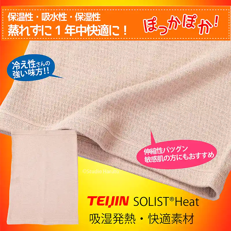 ![]() あなたの「冷え」に、帝人の科学が寄り添います。 長年、多くの方を悩ませてきた「体の冷え」。それは、単に不快なだけでなく、健やかな毎日の妨げにもなりかねません。カイロで一時的に温めたり、厚着でごまかしたり…そんな日々はもう終わりにしませんか? ご紹介するのは、ただの腹巻ではありません。これは、日本の大手繊維メーカー帝人が、長年の研究の末にたどり着いた「着る、ぬくもり」という名のソリューションです。 秘密は、魔法のような繊維「ソリスト(R)ヒート」。 この腹巻の心臓部ともいえる「ソリスト(R)ヒート」は、体から発せられる目に見えないほどのわずかな湿気(不感蒸泄)を捉え、それを熱エネルギーに変換する「吸湿発熱」というメカニズムを持っています。これは、言わばご自身の力で、自然で快適な暖かさを生み出す最先端の技術。だからこそ、電気やカイロのような乾いた熱さとは一線を画す、陽だまりのような、じんわりと優しいぬくもりが続くのです。 「暖かさ」と「快適さ」は両立できる。 従来の保温インナーにありがちだったのが、「暖かいけれど、汗をかくと蒸れて逆に冷えてしまう」という悩み。しかし、「ソリストRヒート」は吸湿性だけでなく、余分な湿気を外に逃がす放湿性にも優れています。この絶妙なバランスが、暖房の効いた室内や電車内でも蒸れにくく、常にサラリと快適な状態をキープする秘訣。まさに、冬の寒さだけでなく、夏の冷房による「夏冷え」対策にも最適な、一年を通じてあなたの味方となるパートナーです。 薄く、軽く、そして驚くほどしなやかに伸びる。その肌触りは、まるで第二の皮膚のよう。締め付け感から解放され、着けていることを忘れるほどの心地よさは、リラックスタイムはもちろん、アクティブな一日にも寄り添います。 自分自身へのご褒美に。大切なご家族へのプレゼントに。 帝人の技術の粋を集めたこの一枚が、あなたの毎日を、芯から温かく、そして快適に変えていくことをお約束します。 ![]() テイジンの吸湿発熱快適繊維「ソリスト(R)ヒート」を使用したあったか腹巻 お腹も腰もぽっかぽかの快適さと優しい肌触り。 ソフトな風合いでボディにフィット、おなかをすっぽり包み込む長めの丈です。 軽くて暖かく、体になじむ心地よいやわらかさ。敏感肌の方にも。 薄いからアウターにひびかない。 蒸れない。だから1年中着用OK。 伸縮性バツグン。締め付けない。保温性ばっちり。妊婦さんにもおすすめ。 吸湿発熱・快適素材 ・保湿性が高く、お肌しっとり。 ・吸水性・放湿性に優れているので蒸れずに一年中快適。 ・薄いのにしっかり伸縮して体にしなやかフィット。 |