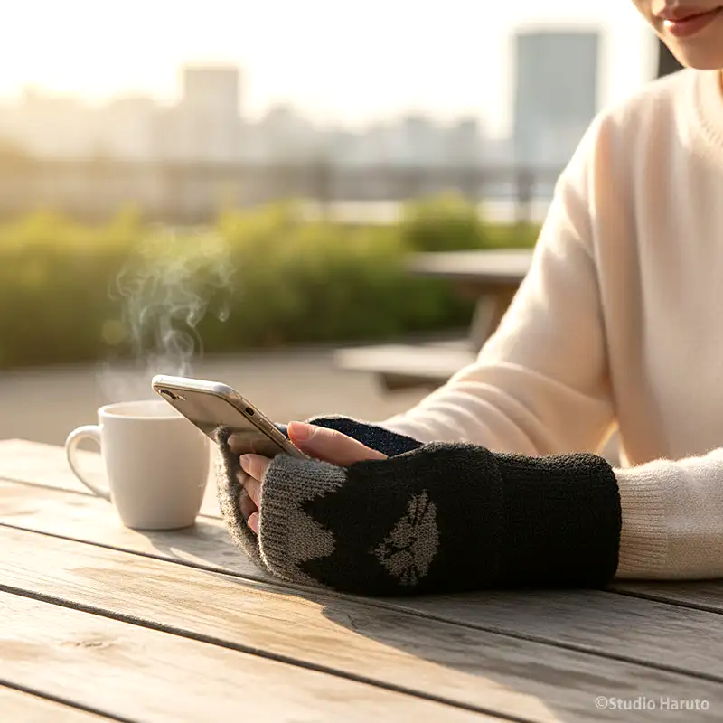 ![]() ![]() その指先に、シックな温もりと遊び心を。 冬の冷たい空気は、真っ先に指先から私たちの体温を奪っていきます。ポケットに手を入れても、かじかむ指先。手袋をすれば、スマートフォンが思うように扱えない…。そんな毎年繰り返される冬の小さなストレスに、この「ねこ柄ハンドウォーマー」が、賢く、そして愛らしい終止符を打ちます。 デザインと機能性の完璧なマリアージュ シャープなブラックのニット地に浮かび上がるのは、凛とした表情の黒ネコ。可愛らしさの中に、どこか大人びた雰囲気を漂わせ、普段のコーディネートを邪魔することなく、さりげないアクセントを加えます。しかし、このアイテムの真価は、その内側に隠されています。手を滑り込ませた瞬間、あなたを虜にするのは、高密度で贅沢なポリエステルボア。まるでビロードのような滑らかな肌触りと、空気をたっぷりと含んで生み出される卓越した保温性が、指の付け根から手首までを確実に温め、冷えから守ります。 日常のあらゆるシーンを、もっと自由に、もっと快適に。 指先が解放されたデザインは、現代のライフスタイルに完璧にフィットします。通勤電車でのメッセージチェック、オフィスでのタイピング、カフェでの読書。あらゆるシーンで、もうハンドウォーマーを外す必要はありません。手のひら側に施された、見るたびに心が和む「肉球」の刺繍は、デザイナーの細やかなこだわり。それは、忙しい日常の中で、ふとした瞬間にあなたを笑顔にするための、ささやかな魔法です。 この冬は、ただ暖かいだけじゃない。心まで満たされる、特別な温もりを手に入れてみませんか。大切な方への贈り物としても、きっと喜ばれる一品です。 ![]() お出かけや旅行に便利なあったかネコ柄ハンドウォーマー ふんわりあったか素材ですっぽり包むから手元があったか~い。 スマホ操作や寒い場所でのパソコンワーク等に便利なハンドウォーマー。 内側はボア生地なので、とてもあたたかく着用頂けます。 ・伸縮性があるから手首を締め付けない ・指穴付きだからズレずにフィット リラックスタイムにもおすすめ。 |