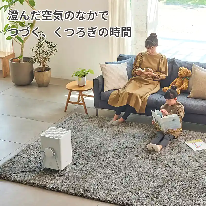 ![]() ![]() ■空気清浄機 2重反転ファン【ライトグレー】機能紹介 リズム独自技術の「2重反転ファン」を採用し、適用床面積36畳対応なのにコンパクトな本体サイズを実現。 自由な風向き調節と大量の風で理想的な空気循環気流を作り出し、花粉、ウィルス、ペットの臭いなど気になる空気の汚れを素早く捕集。 部屋の空気と本体の掃除がしやすい空気清浄機です。 それは、空間を“掃除”するという新発想。くつろぎの空気清浄機「Silky Wind Clean」 ただ空気をきれいにするだけではない。理想の気流を創り出し、空間そのものを清浄する。リズムが長年培ってきたファン技術の粋を集め、空気清浄機は新たな領域へと進化しました。 ![]() 自由な風向きが創り出す、理想の循環気流 本体が約240度回転する独自の構造は、これまでの空気清浄機の常識を覆します。ただ上に向けるだけでなく、清浄された空気を壁や床に沿わせて流すことで、部屋の隅々までよどみなく空気を循環。まさに「空間掃除機」のように、花粉やハウスダストを効率的に捕集します。玄関では帰宅したあなたを空気のシャワーで出迎え、寝室では静かに寄り添う。その使い方は、あなた次第です。 常識を覆す、パワフルさとコンパクトの両立 適用畳数36畳というパワフルな清浄能力を、A3サイズに収まるほどのコンパクトなボディに凝縮。これを可能にしたのが、リズム独自の「2重反転ファン」です。小さい羽根でも大風量を、そしてささやき声以下の約22dBという静音性を実現しました。リビングから書斎へ、持ち運びも軽やかです。 清潔さを徹底追求した、簡単メンテナンス設計 本当に心地よい空間のためには、機器自体の清潔さも不可欠です。ホコリが溜まりやすいプレフィルターは、本体に付けたまま掃除機で手軽にお手入れ可能。 さらに、ファンガードやファン、フィルターケースに至るまで、工具不要で分解でき、そのほとんどが水洗いできます。隅々まで清潔を保てる設計は、安心の証です。 3層フィルターが叶える、妥協なき集じん・脱臭性能 プレフィルター、静電HEPAフィルター、活性炭脱臭フィルターの3層構造で、空気中の脅威を逃しません。0.3μmの微粒子を99.97%以上捕集するHEPAフィルターが花粉やウイルスを捉え、脱臭フィルターがペットや調理などの気になるニオイを素早く取り除きます。 暮らしに寄り添う、インテリジェントな機能 ホコリとニオイ、2つのセンサーがお部屋の状態を常に監視し、Autoモードで最適な運転を自動選択。就寝時には明暗センサーが働き、表示の明るさや風量を自動で制御する心配りも。あなたの暮らしのリズムに、Silky Wind Cleanが静かに調和します。 どんなインテリアにも溶け込む、洗練されたライトグレー。上質な空気と共に、心地よい毎日をお届けします。 ![]() ![]() 【詳細仕様】 品名:Silky Wind Clean 型番:9YYA63RH08 配色:ライトグレー 本体サイズ:約 高さ45.8 × 幅36.1 × 奥行31.3cm 質量:約7.6kg(ACアダプター含まず) 羽根枚数:2枚 ファン回転方式:2重反転式/DCブラシレスモーター 上下手動首振り:上下(約240°) 適用床面積:空気清浄 ~約36畳・60平方メートル (目安) ※3 清浄時間:8畳を約8分 (ターボモード運転時) 風量:(手動1)約0.2立方メートル/min、(手動2)約1.7立方メートル/min、(手動3)約4.9立方メートル/min、(Turbo)約7.2立方メートル/min 運転音:(手動1)約22dB、(手動2)約33dB、(手動3)約53dB、(Turbo)約63dB ※2 消費電力:(手動1)約3.2W、(手動2)約6.1W、(手動3)約25.7W、(Turbo)約57W 電気代(1時間あたり):約0.10~約0.84円 ※8 電源:入力:AC100V 50/60Hz、出力:DC24V(専用AC電源アダプター使用) 電源コード長:ACアダプター:約2.1m・AC電源コード:約1.0m フィルター:集じんフィルター(交換目安:約1.5年間)※7/脱臭フィルター(交換目安:約1.5年間)※7/プレフィルター センサー:ホコリ / ニオイ / 明暗 主な機能:各パーツの脱着・洗浄(水洗い)/明暗センサーによる減光・風量制御/メモリー機能/安全機能 付属品:ACアダプター/AC電源コード/フィルター各種(集じんフィルター/脱臭フィルター)/コードクリップ/フィルター交換時期ラベル/取扱説明書・保証書 保証期間:1年間 |