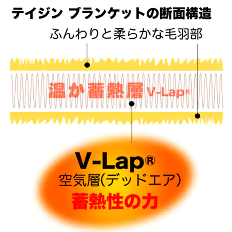 ![]() ![]() ![]() なぜ、この毛布は格別に暖かいのか。 ― 繊維のプロ、テイジンが解き明かす「温もりの科学」 ― 凍えるような夜、毛布にくるまってもなかなか暖まらない…。そんなご経験はございませんか。 お客様の快適な睡眠のために、私たちがお届けするのは単なる「暖かさ」ではありません。それは、繊維テクノロジーの粋を集めた「持続する温もり」です。 秘密は、革新のタテ型構造中綿「V-Lap(R)」 この毛布の心臓部とも言えるのが、帝人が誇る革新的な素材「V-Lap(R)」です。 一般的な中綿が繊維を横(水平)に重ねるのに対し、V-Lap(R)は繊維をタテ方向(垂直)に緻密に配列しています。 この独自の立体構造こそが、秘密の鍵です。 繊維間に生まれる無数の「空気層(デッドエア)」が、まるで魔法瓶のように、あなたの体温から発せられた熱を捉えて逃がしません。これが、本製品の卓越した「蓄熱性の力」の源泉です。熱を外に逃さず、内側で循環させ、温かさをキープし続けます。 幸福感を高める「マシュマロ・タッチ」 V-Lap(R)が蓄えた熱を、今度は肌に触れる「極厚裏起毛」のふんわりとした毛羽部が優しく包み込みます。 「まるでマシュマロ」と形容されるほどの、濃密でなめらかな肌触り。肌に触れた瞬間、ヒヤリとせず、すぐに温もりが伝わります。 「熱を蓄えるV-Lap(R)層」と、「肌触りが良く温もりを伝える毛羽部」。 この二層構造が、テイジン毛布ならではの深いリラクゼーションへと誘います。 「軽い」のに「ボリューム満点」。 特筆すべきは、これだけのボリュームと圧倒的な保温力を持ちながら、(約)2.4kgという軽やかさを実現している点です。 暖かさのために重さを我慢する必要はもうありません。睡眠中の圧迫感を軽減し、身体への負担を最小限に抑えながら、朝までぐっすりとおやすみいただけます。 どんなお部屋にも優しく調和する、洗練されたシンプルな無地ピンク。デザインを選ばない上質な寝具として、長くご愛用いただけます。 さむーい真冬の夜から、まだ肌寒さの残る春先まで。 この一枚が、あなたの睡眠の質を格段に向上させるパートナーとなります。 テイジンの先進技術が織りなす「科学的な温もり」を、ぜひ今夜からご体感ください。 ![]() あたたかい 熱を逃しにくい 帝人オリジナル素材V-Lap(R)を使用した蓄熱あったか掛け毛布 素材の帝人がこだわって開発した素材、V-Lapを使用。隙間の空気層が熱をにがしにくく、保温力に優れていています。 ふんわり柔らかな肌触りであたたかく、快適におやすみいただけます。 軽いのにボリュームがあり、暖かく、睡眠時の身体への負担も軽減した優しい掛け毛布です。 |