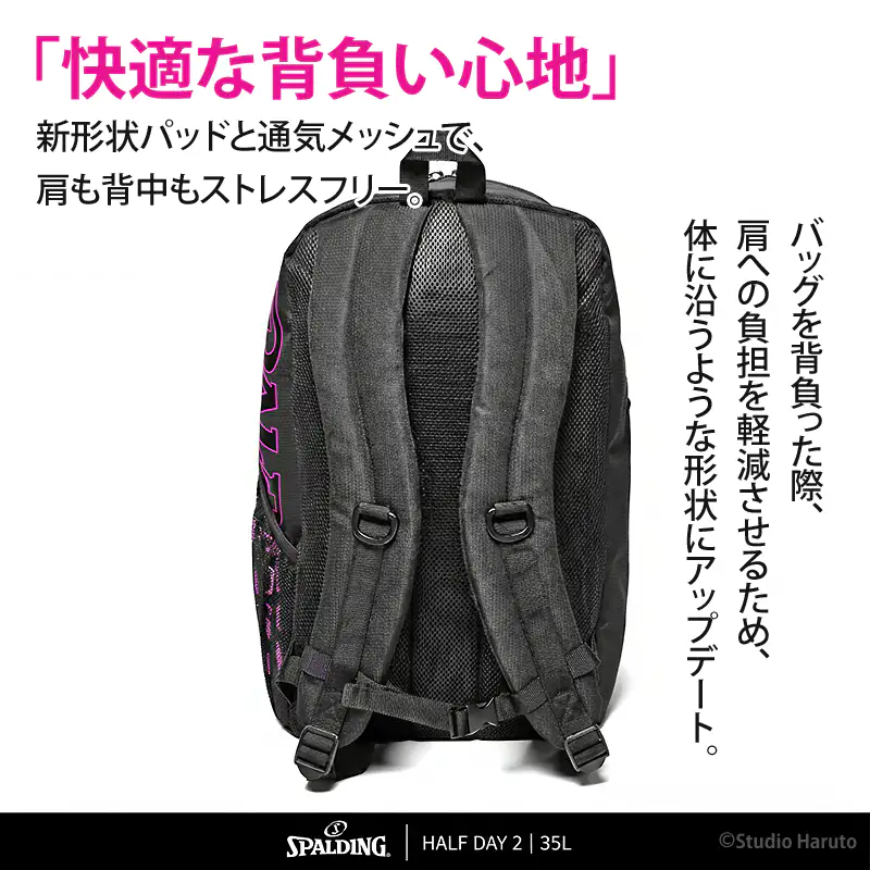 バスケ バッグ ハーフデイ マゼンタ 50-003MG バスケットボール リュック メンズ レディース カジュアル バックパック 35L スポルディング HALF DAY