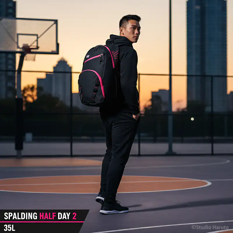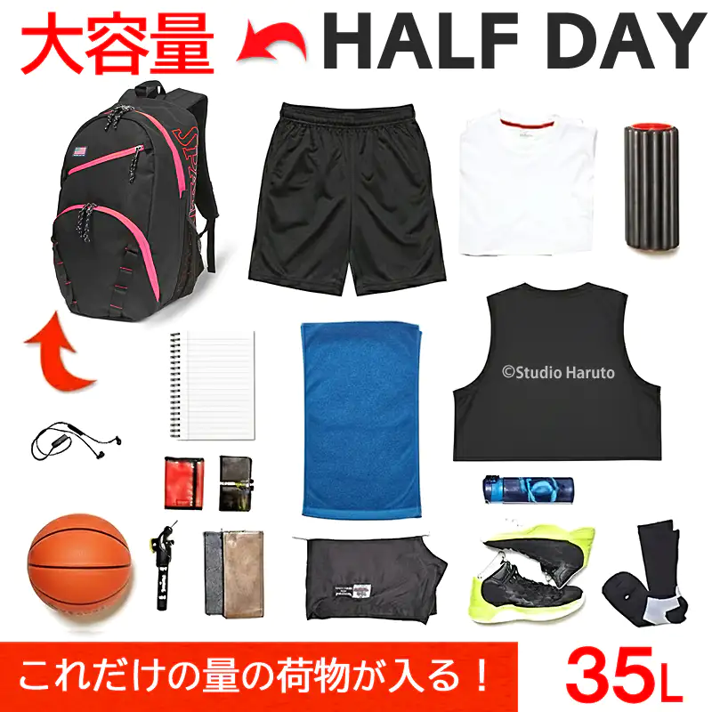 SPALDING HALF DAYバックパック ハーフデイ ブラック バスケットボール用バッグ 大容量35L メンズ レディース カジュアル リュック スポルディング 50-003BK 正規品